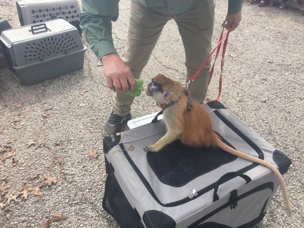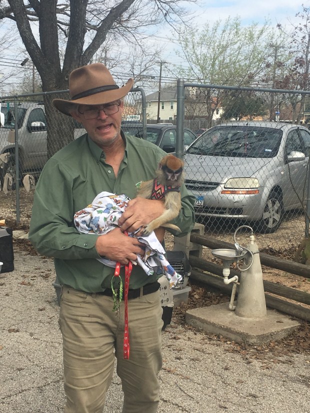 Today, he brought a six-month old monkey he adopted when its mother died. This was the first time that he has brought a primate, so we were excited! He is socializing the little one with two other monkeys. I loved his opening line, “Angel (the monkey) may be cute, but monkeys do not make good pets!” 😝