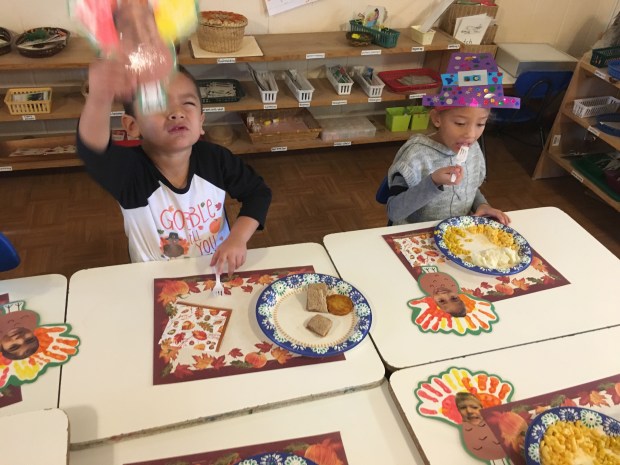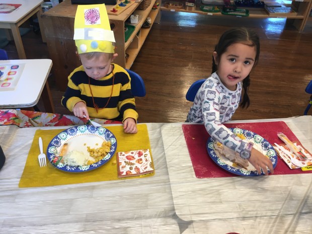 Yummm…what delicious food! We are thankful for our amazing toddler teachers, sweet children and supportive parents!