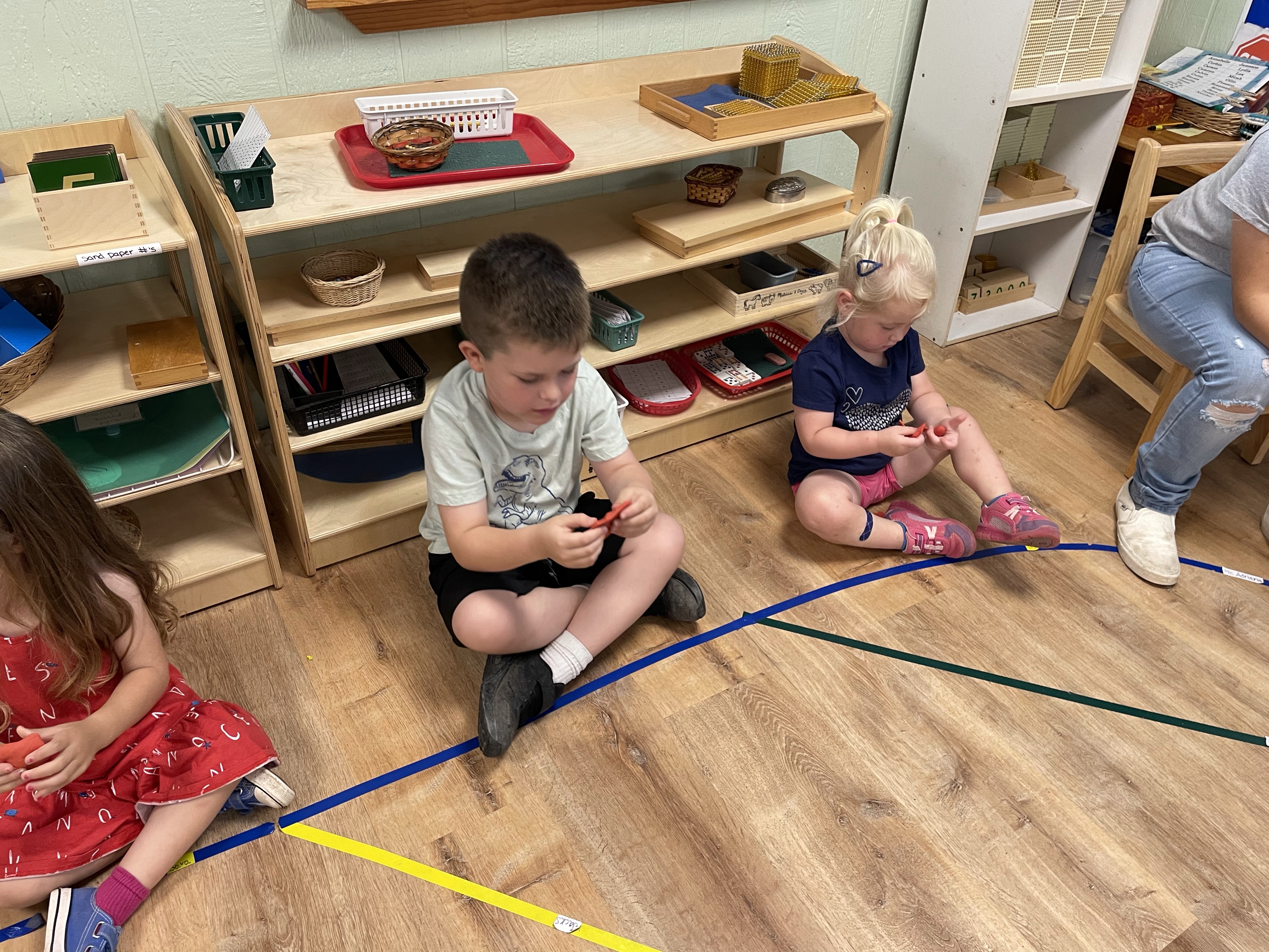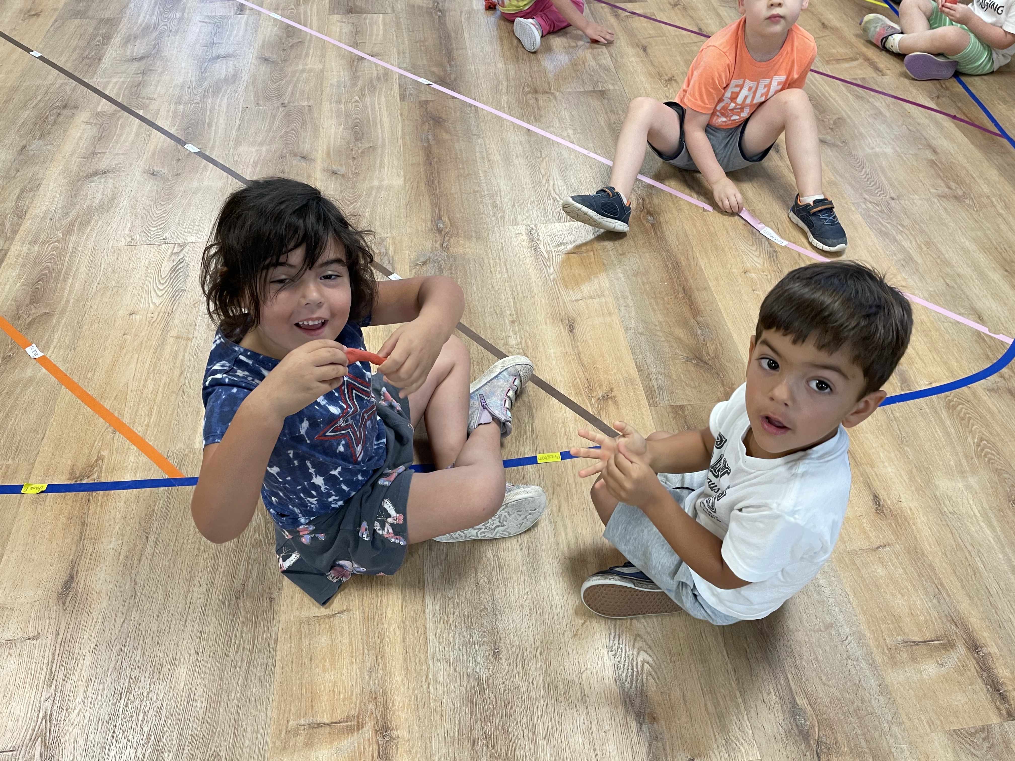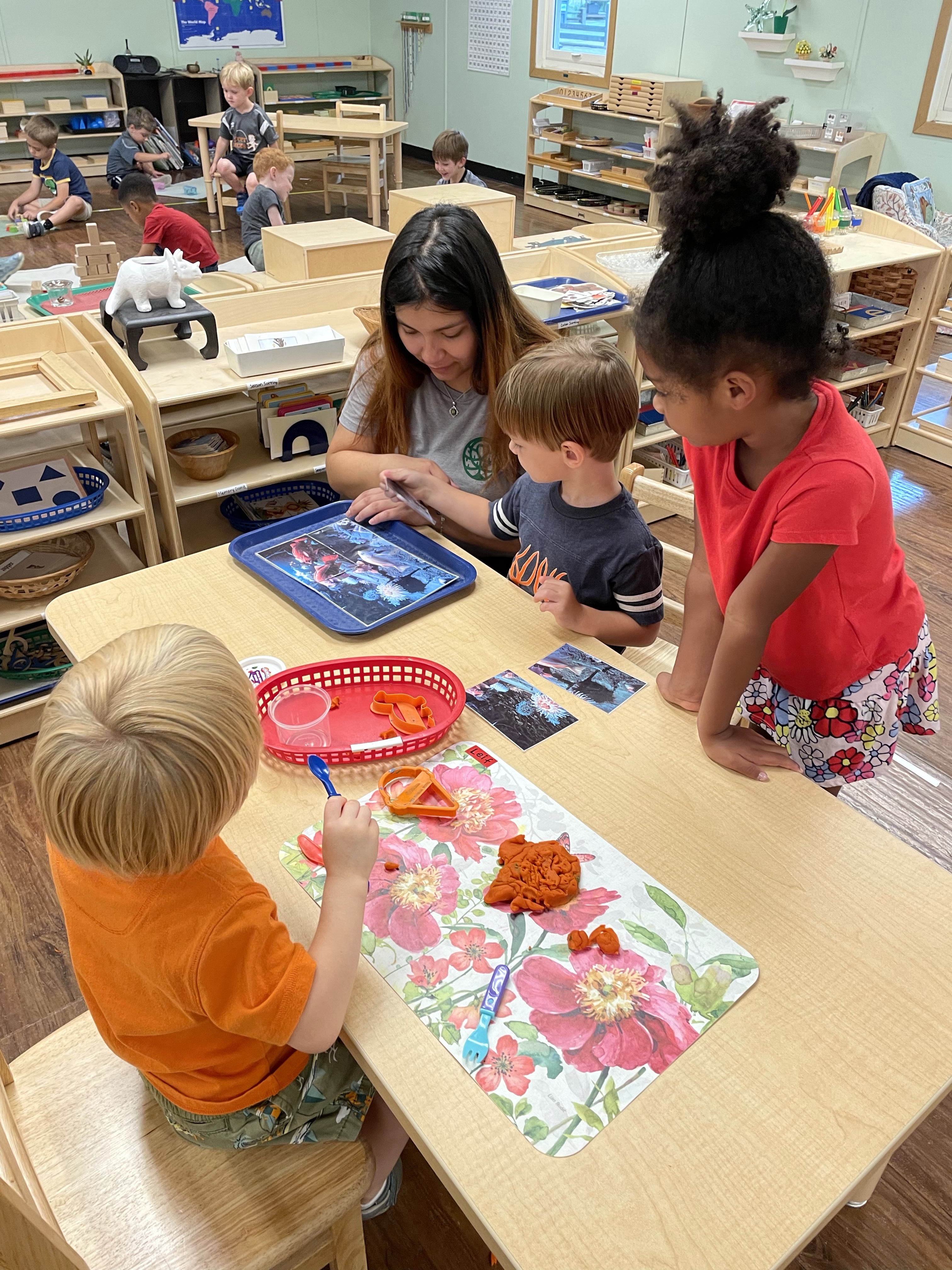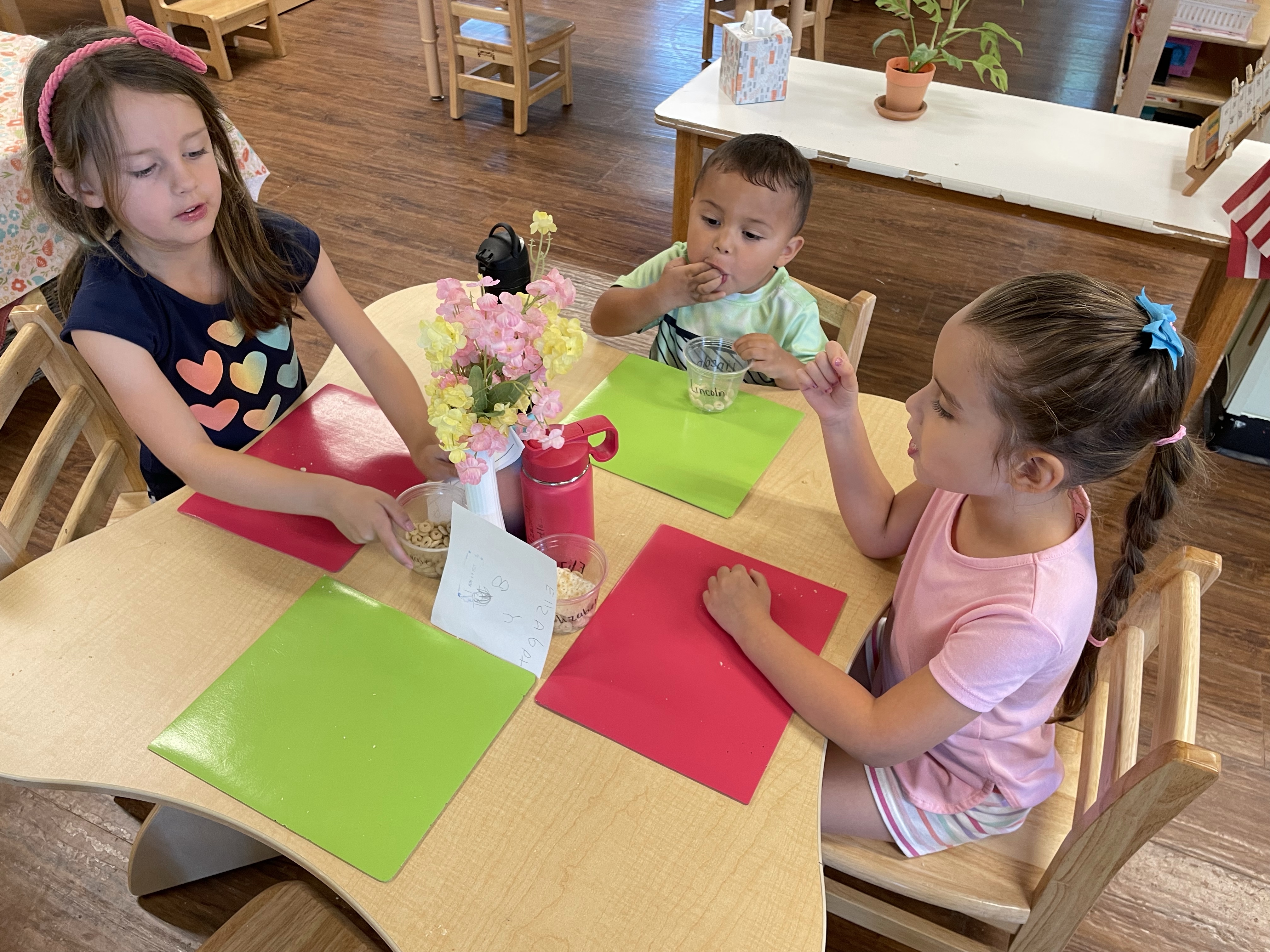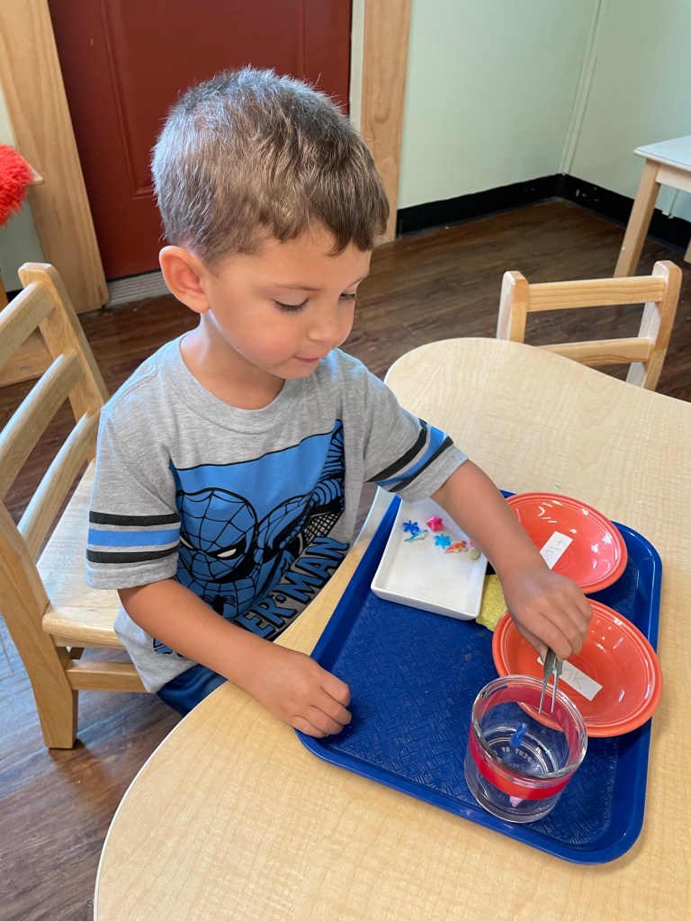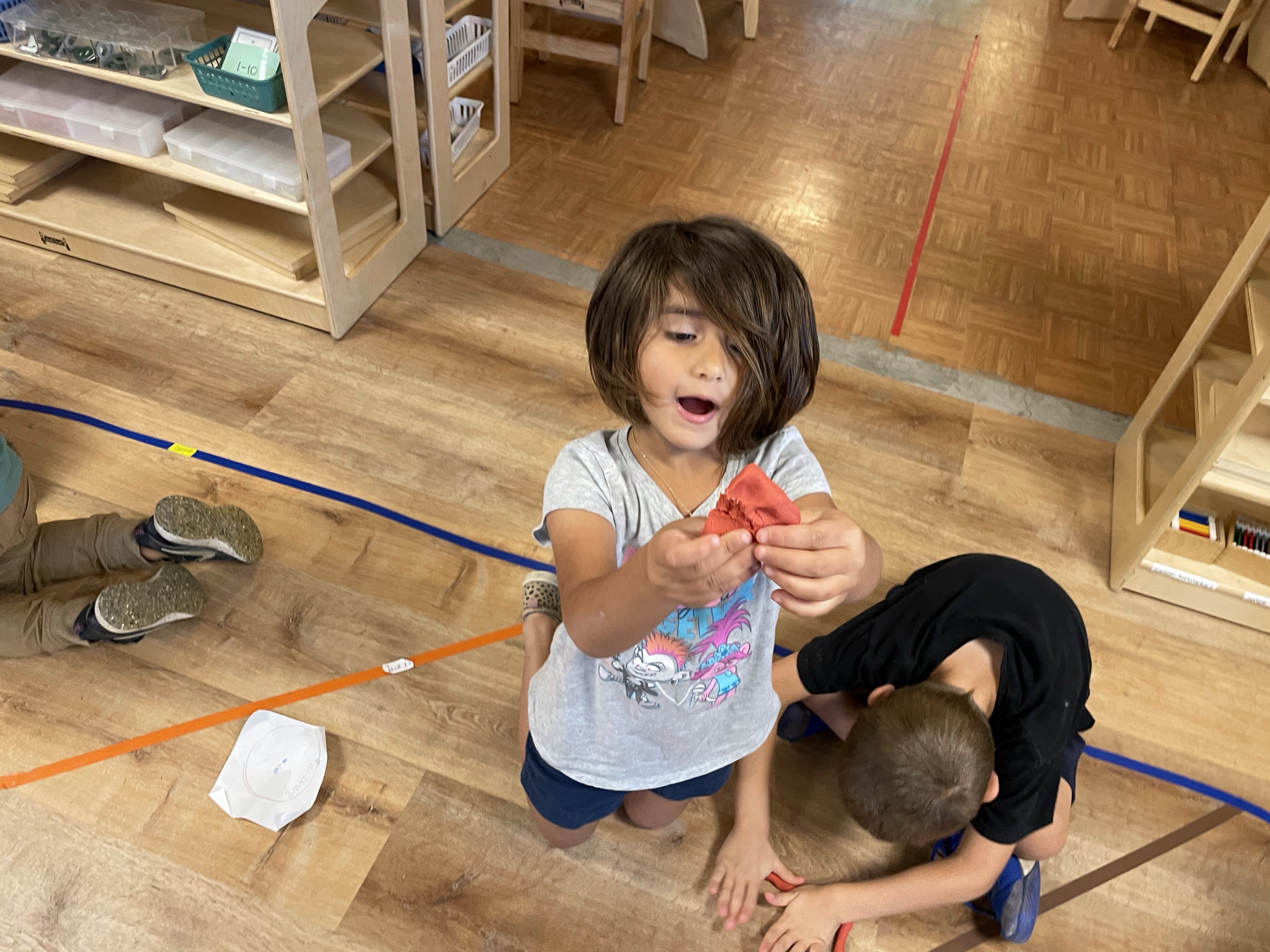 The children had a great time with the sensorial experience of mixing, touching, and smelling the Kool-aid playdough they made as a class today. Next week’s Art Day will be truly, absolutely messy when we paint with fly swatters–just a heads up 🙂