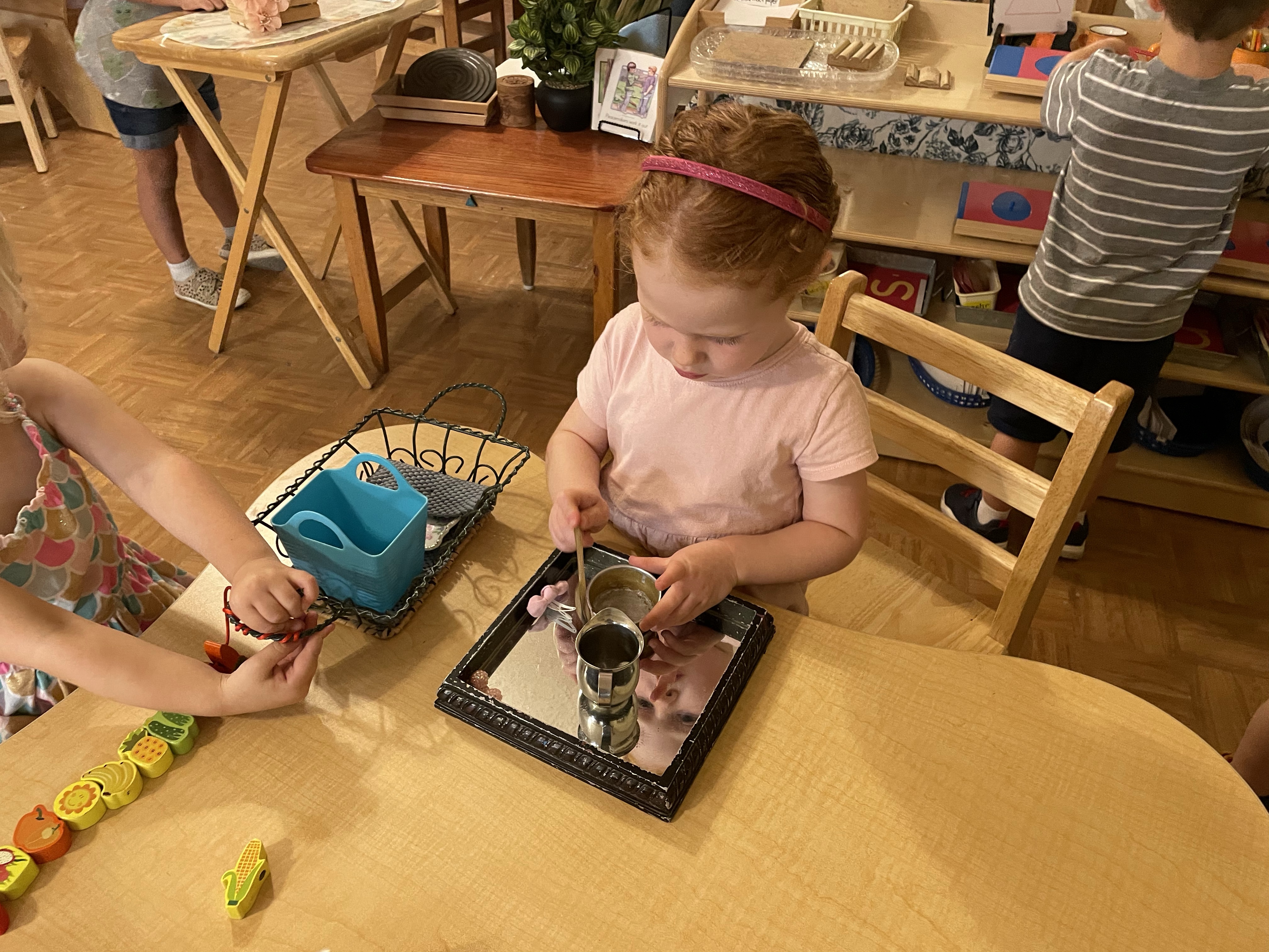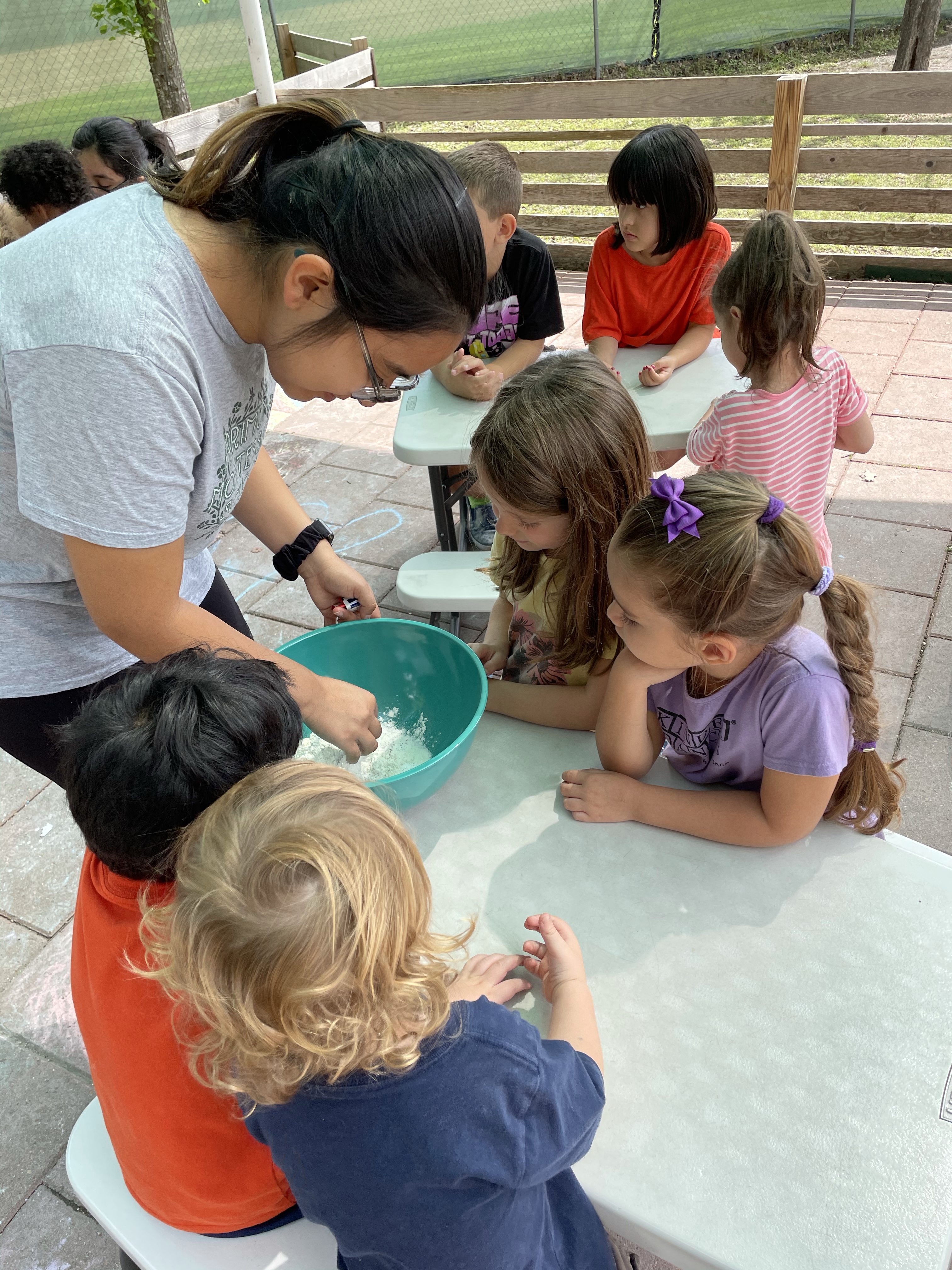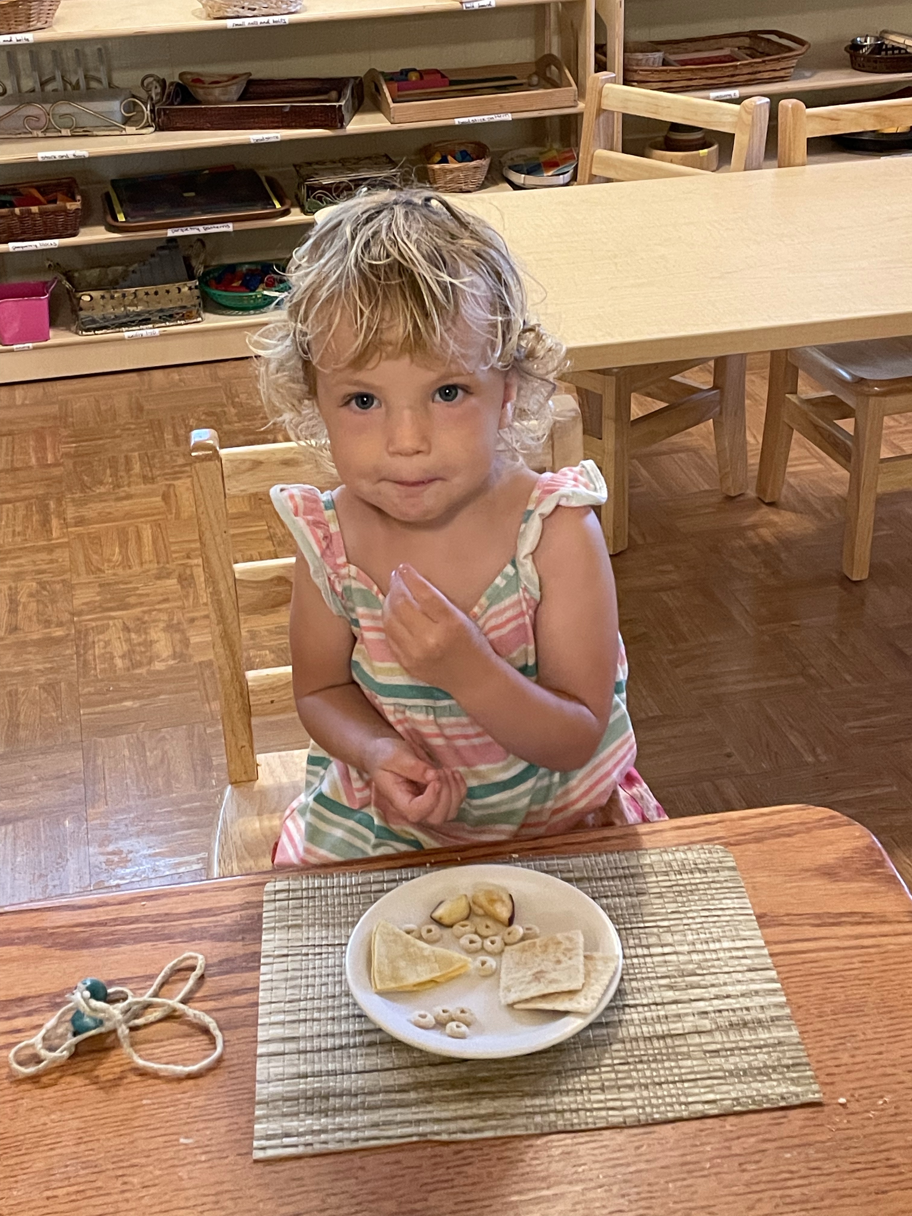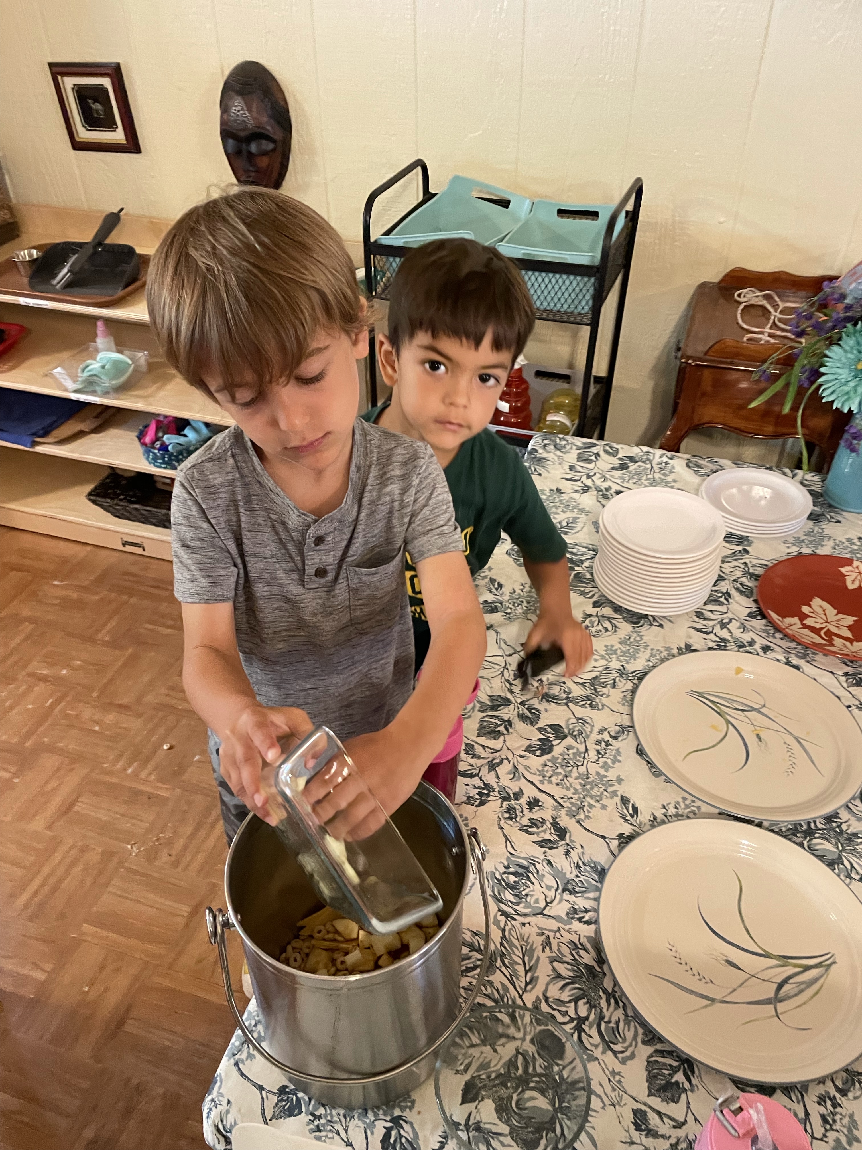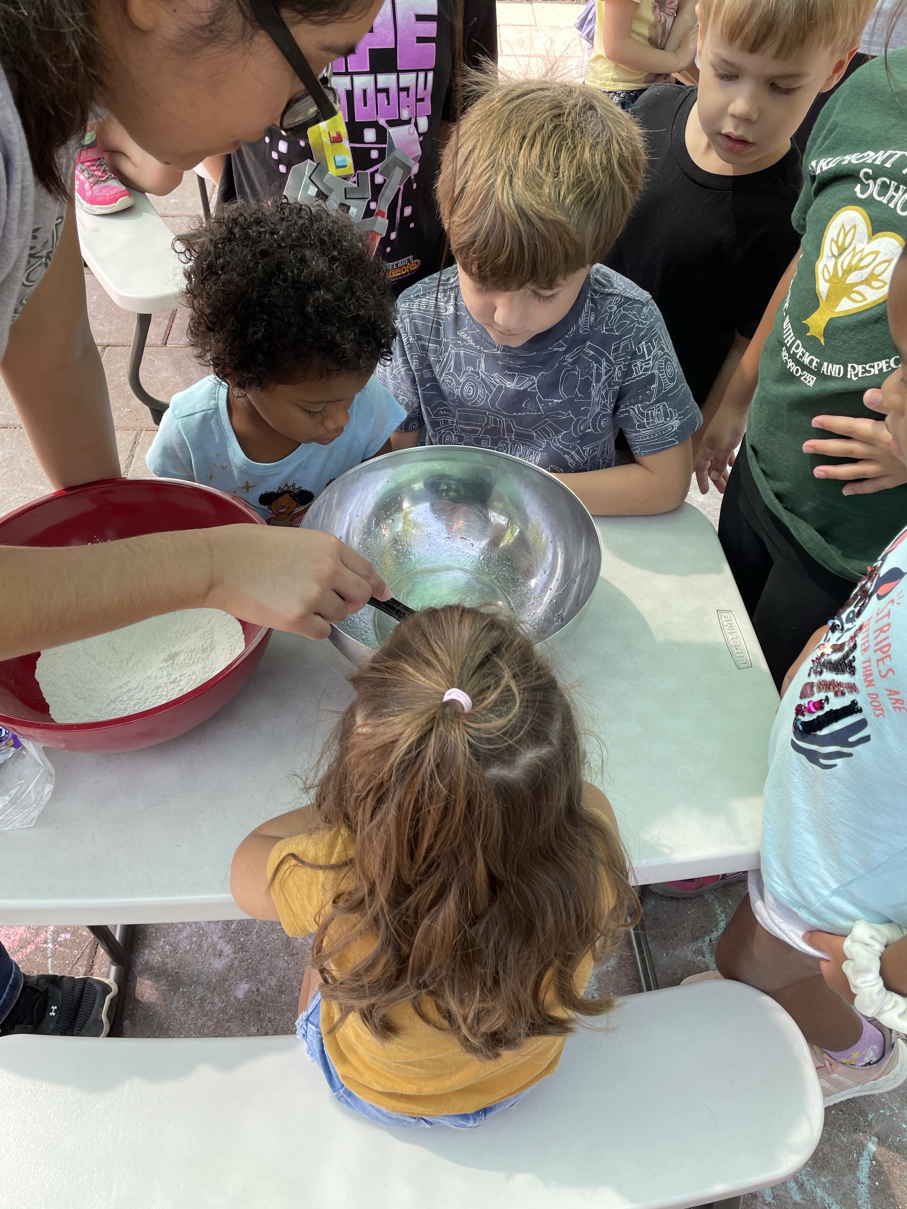 The children had a great time with the sensorial experience of mixing, touching, and smelling the Kool-aid playdough they made as a class today. Next week’s Art Day will be truly, absolutely messy when we paint with fly swatters–just a heads up 🙂