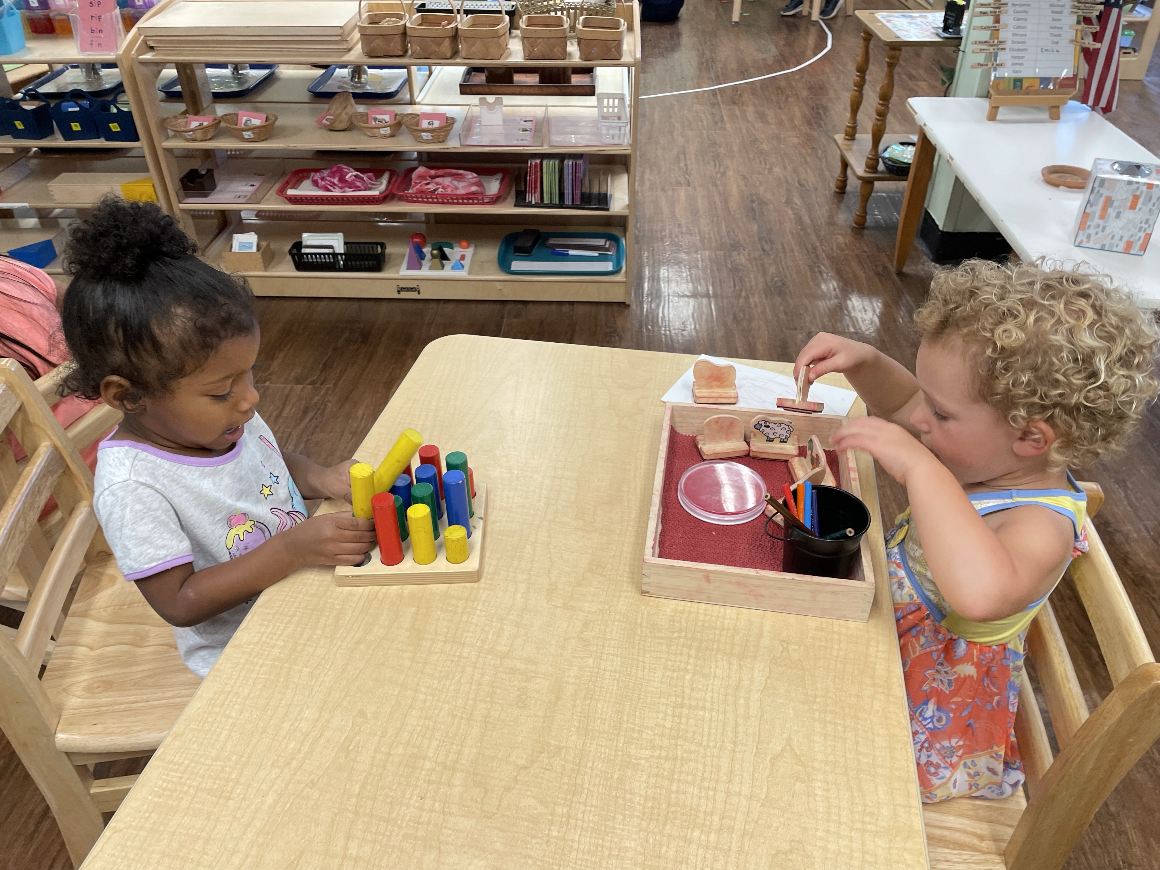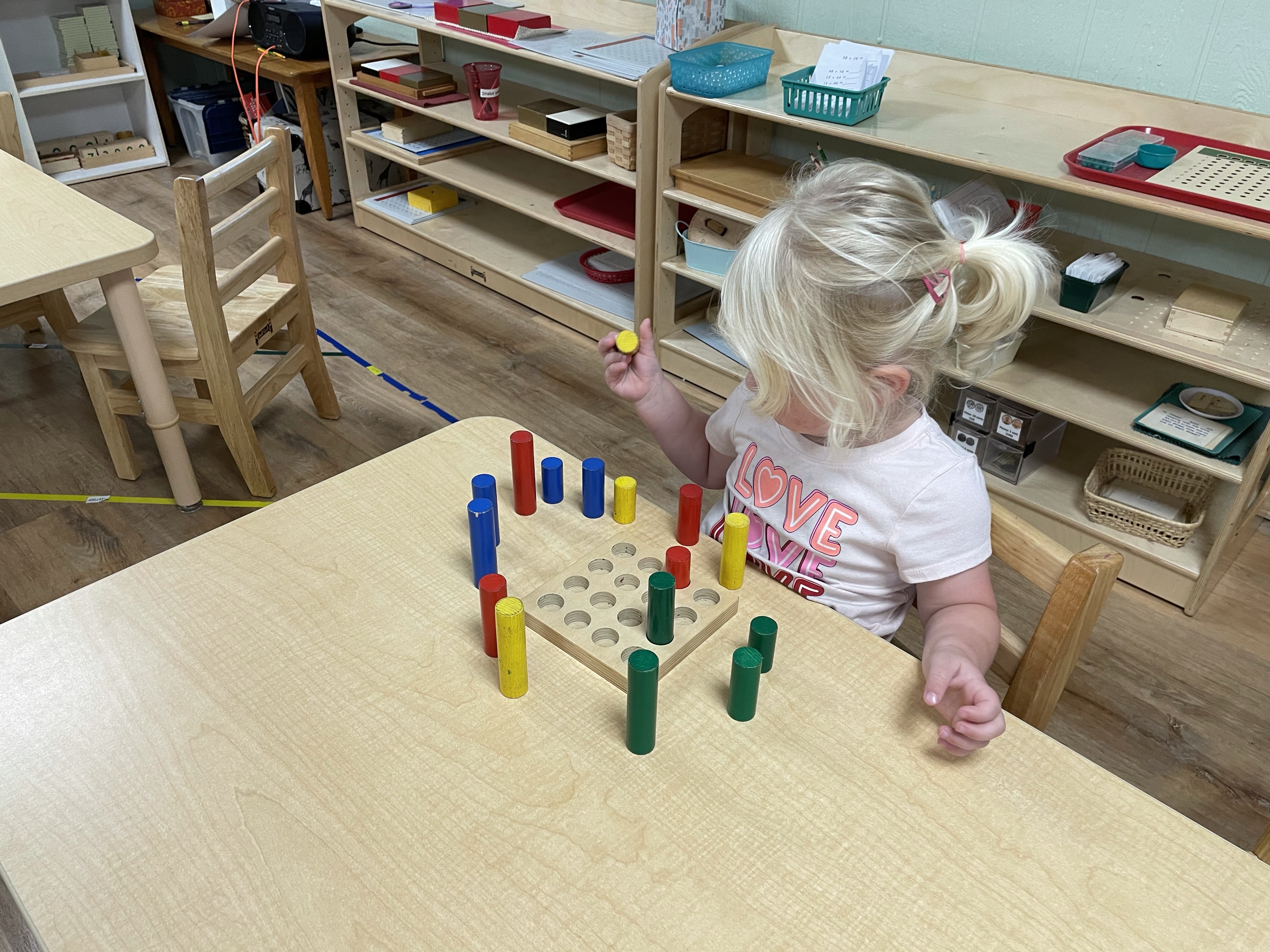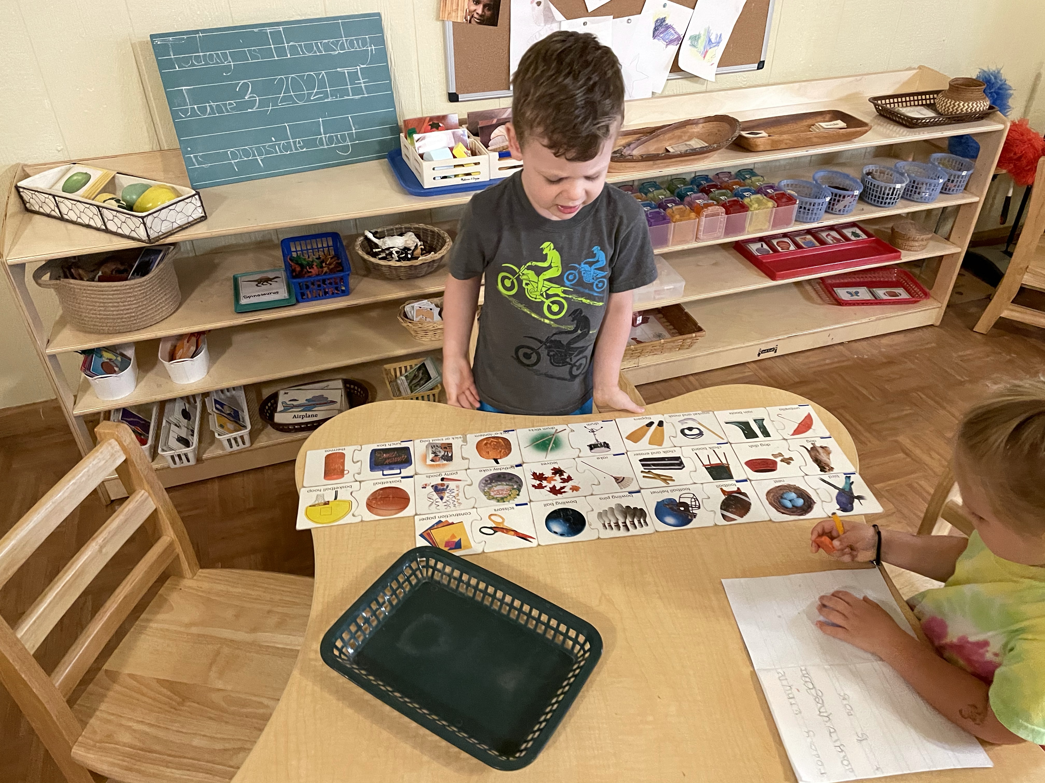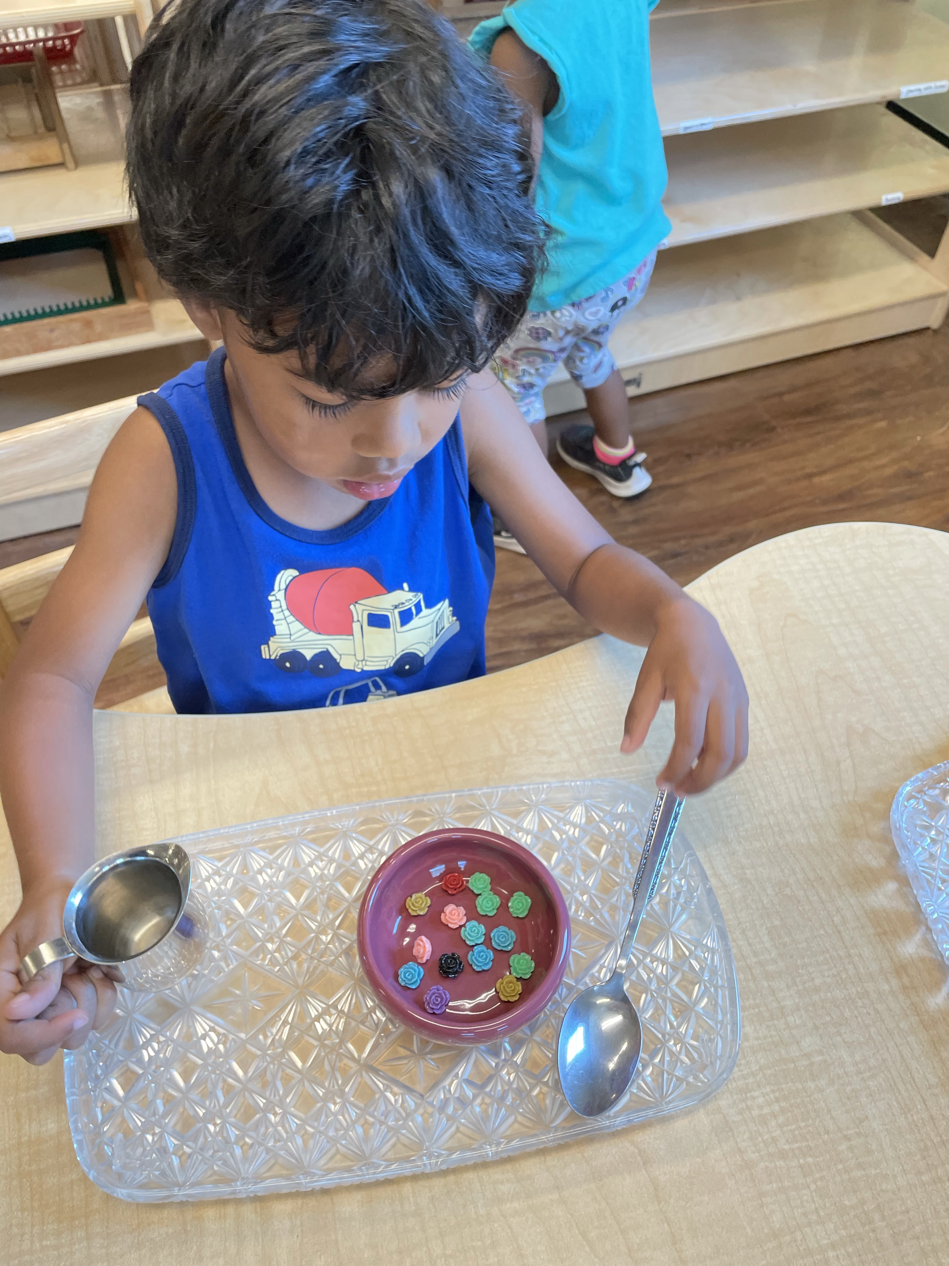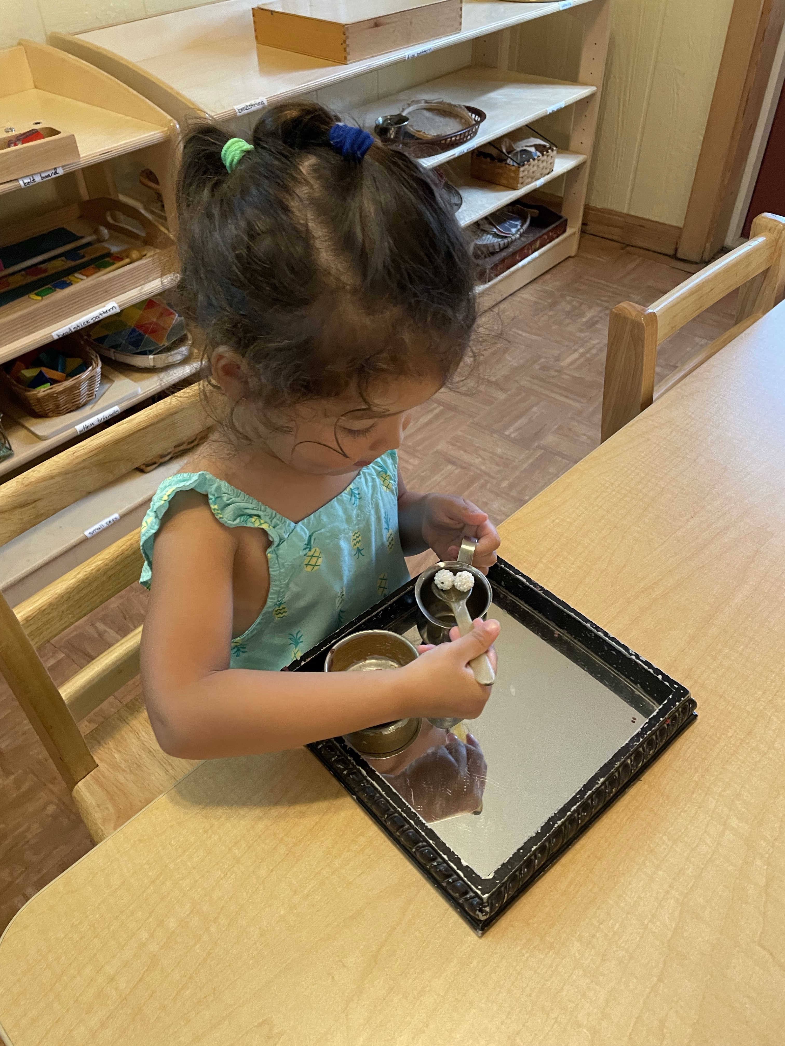 The children had a great time with the sensorial experience of mixing, touching, and smelling the Kool-aid playdough they made as a class today. Next week’s Art Day will be truly, absolutely messy when we paint with fly swatters–just a heads up 🙂