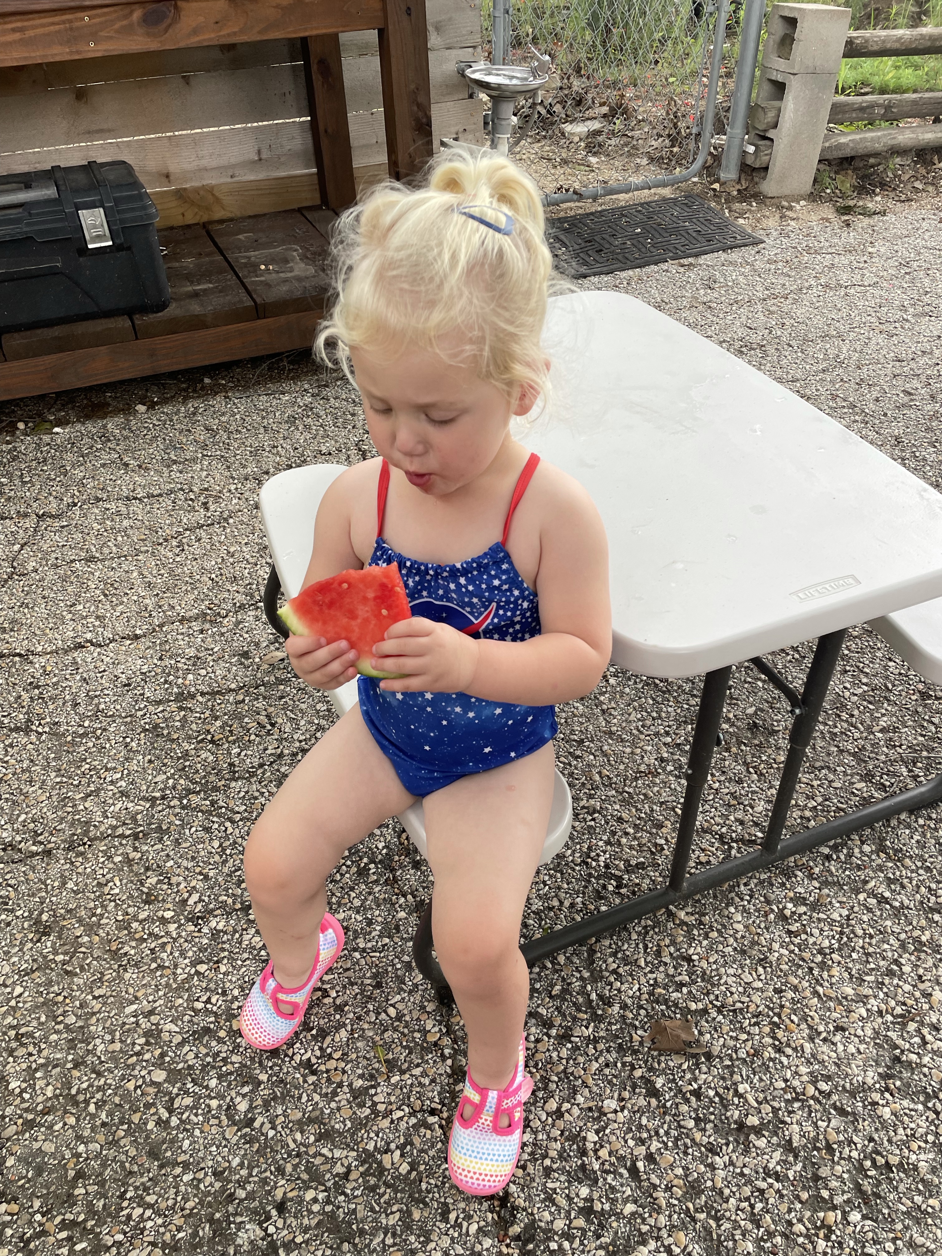 I’ll keep an eye on the weather as next Tuesday approaches and make a call about our next splash day by Sunday. The current forecast doesn’t look favorable for a full splash day at the moment—but we can still enjoy watermelon and bubbles!