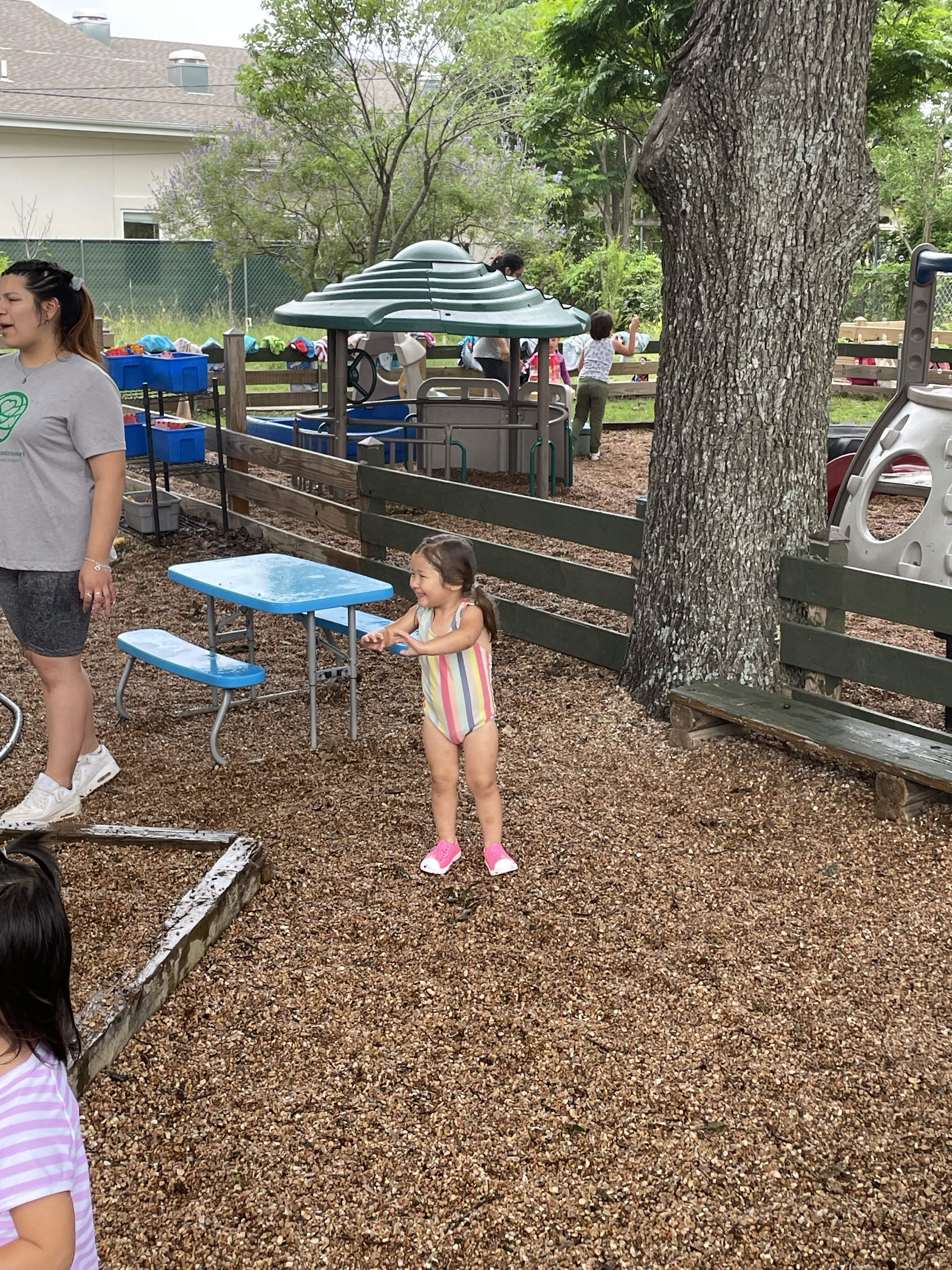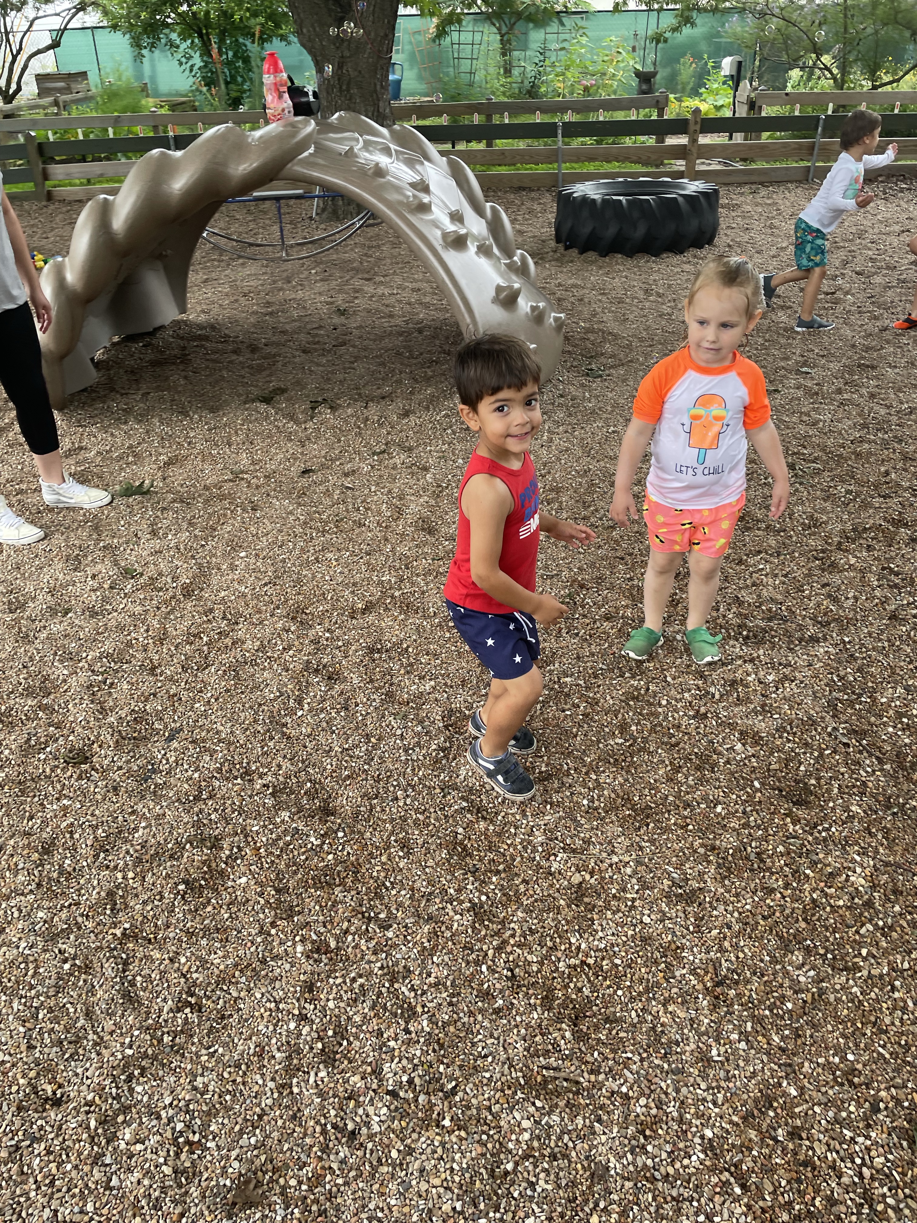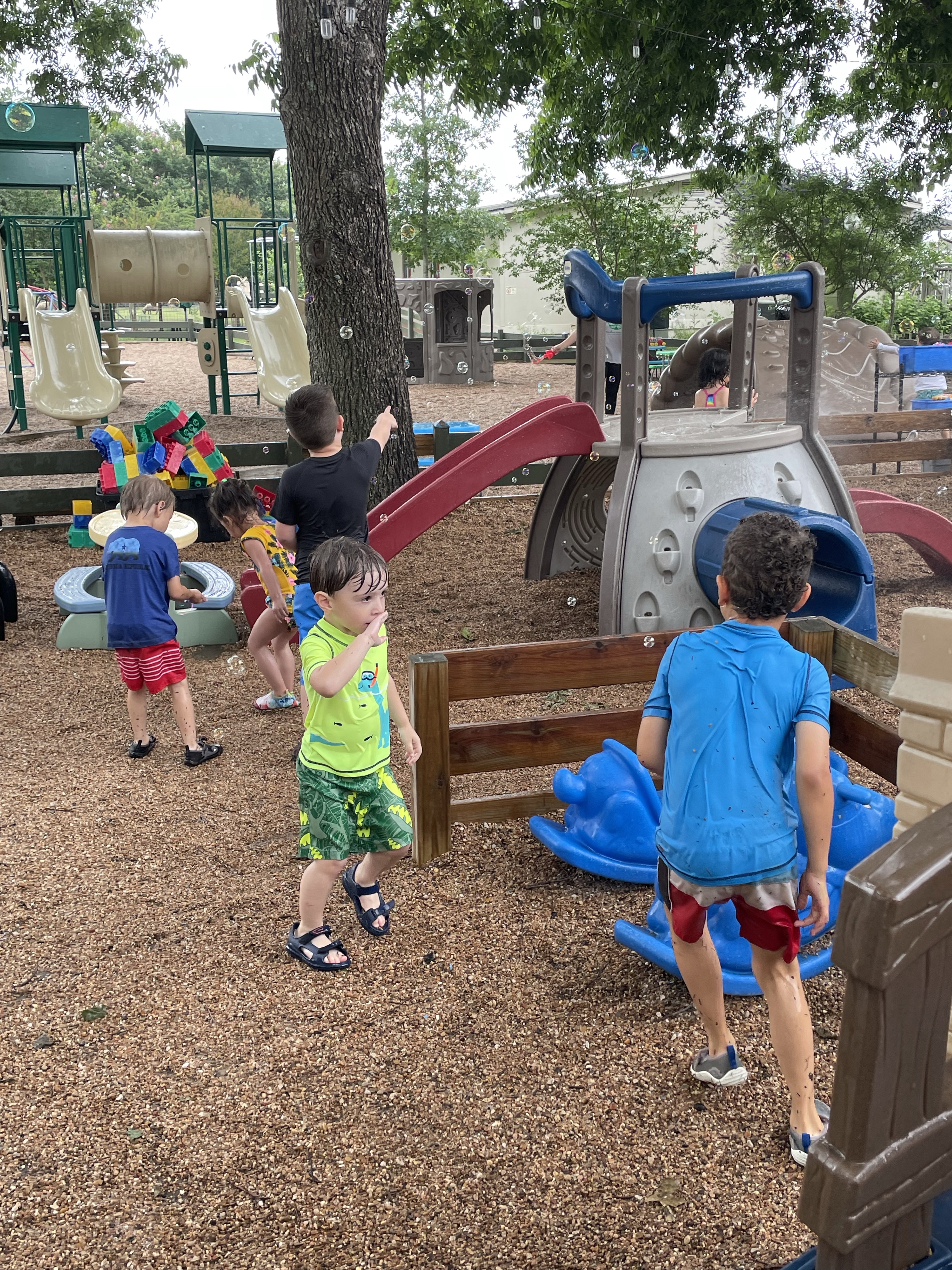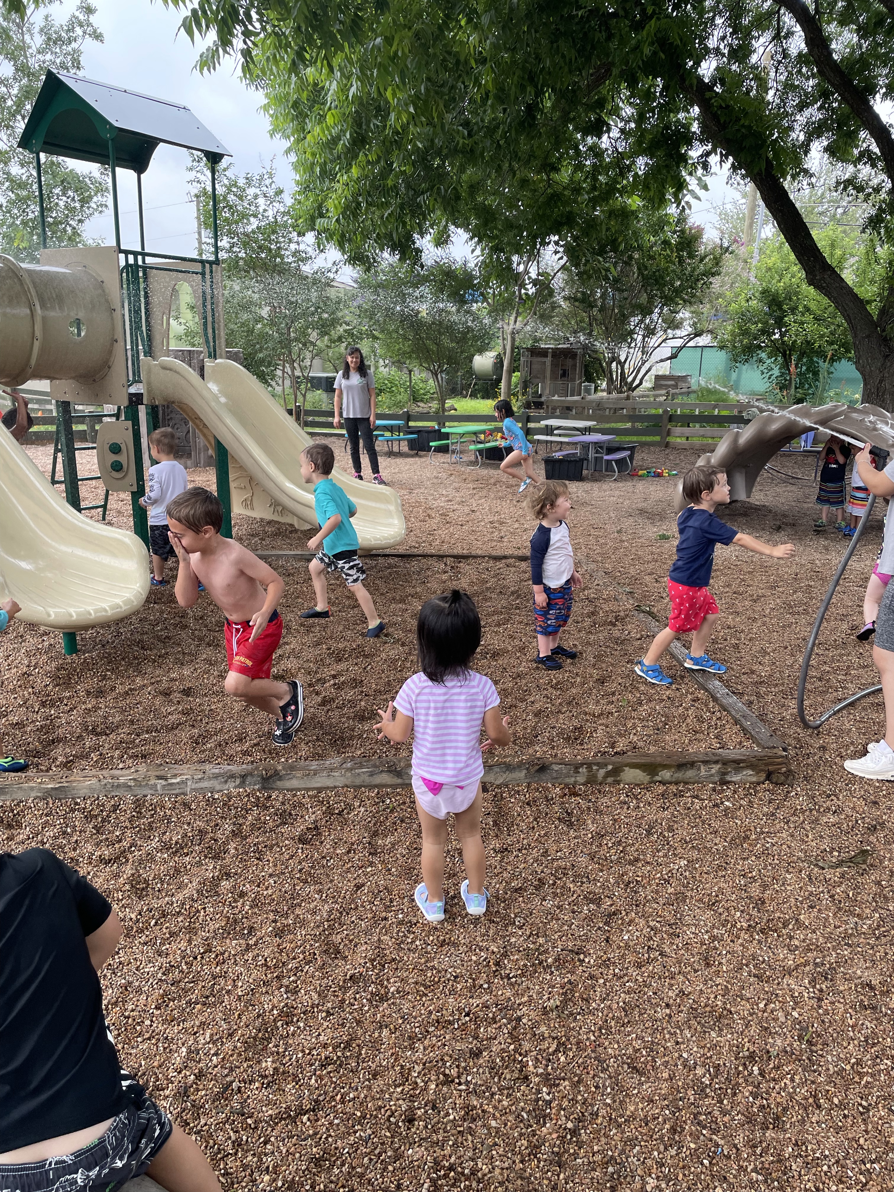Yay! Your child can come to school in their bathing suits/with shirts or rash guards and wearing their normal sneakers. They should bring a bag with water shoes, a towel, and a change of clothing inside. We’ll help them change their shoes before splash day! After watermelon, bubbles, and fun on the playground with the hose, we will into our regular clothing and sneakers.