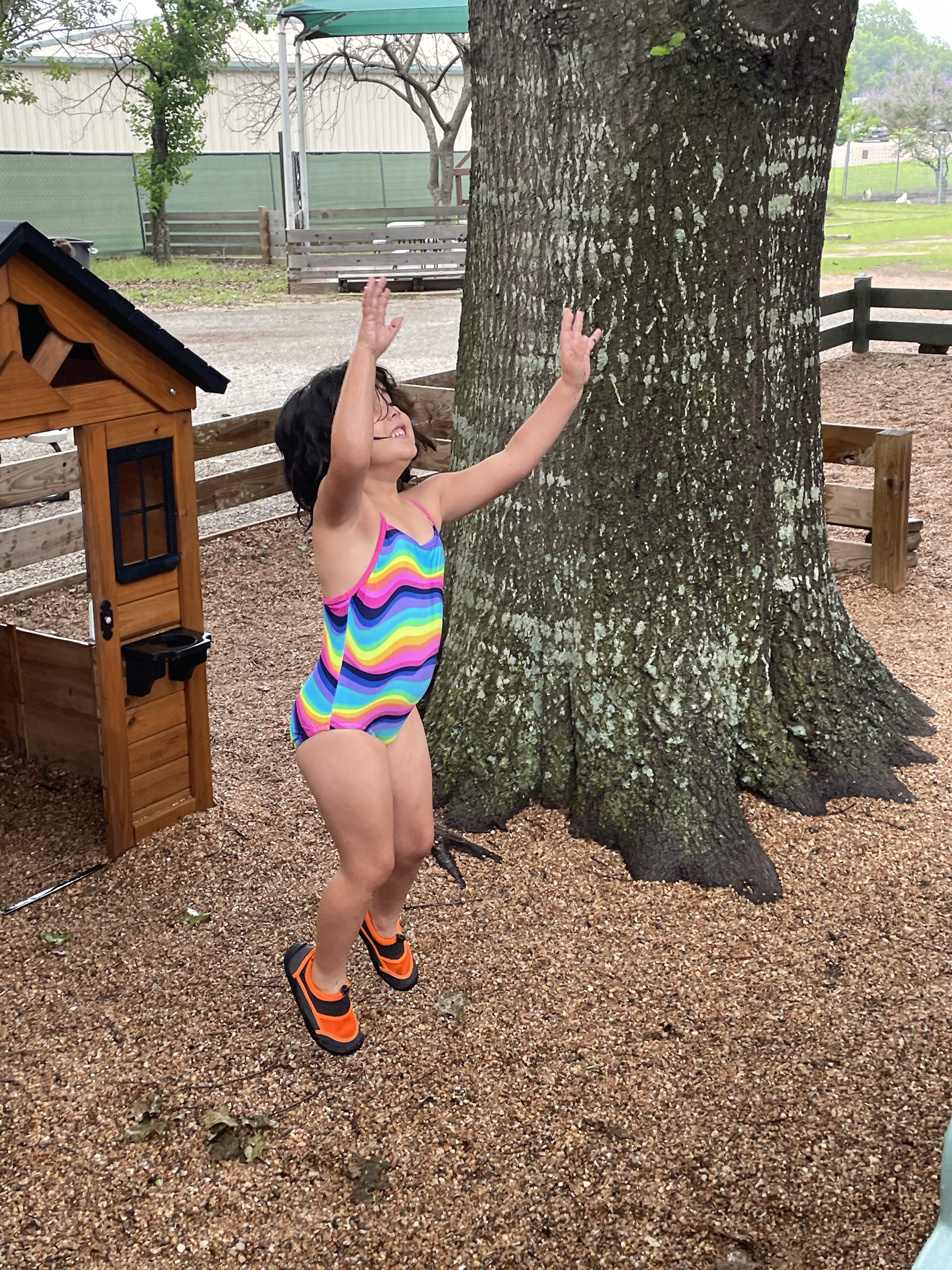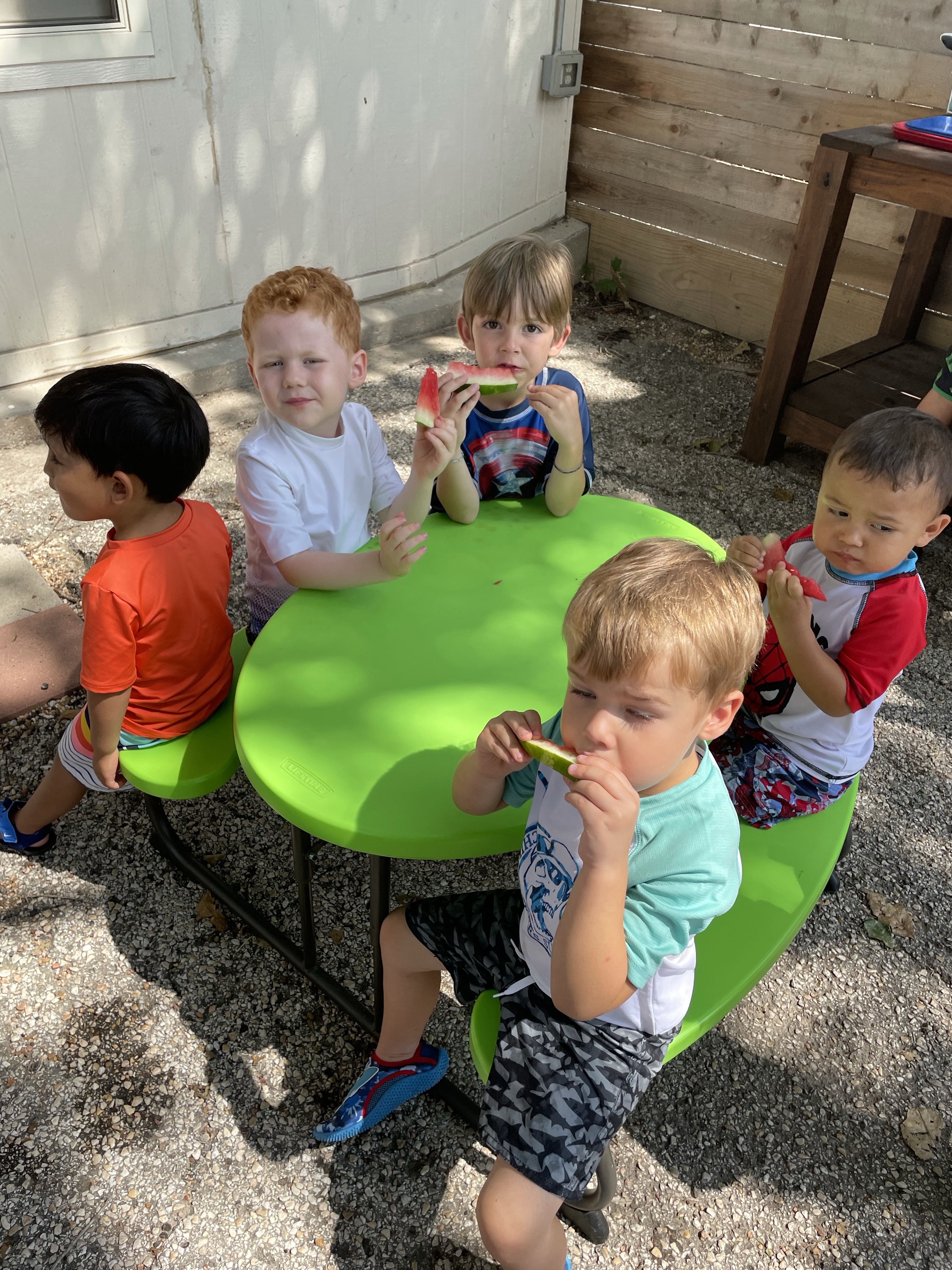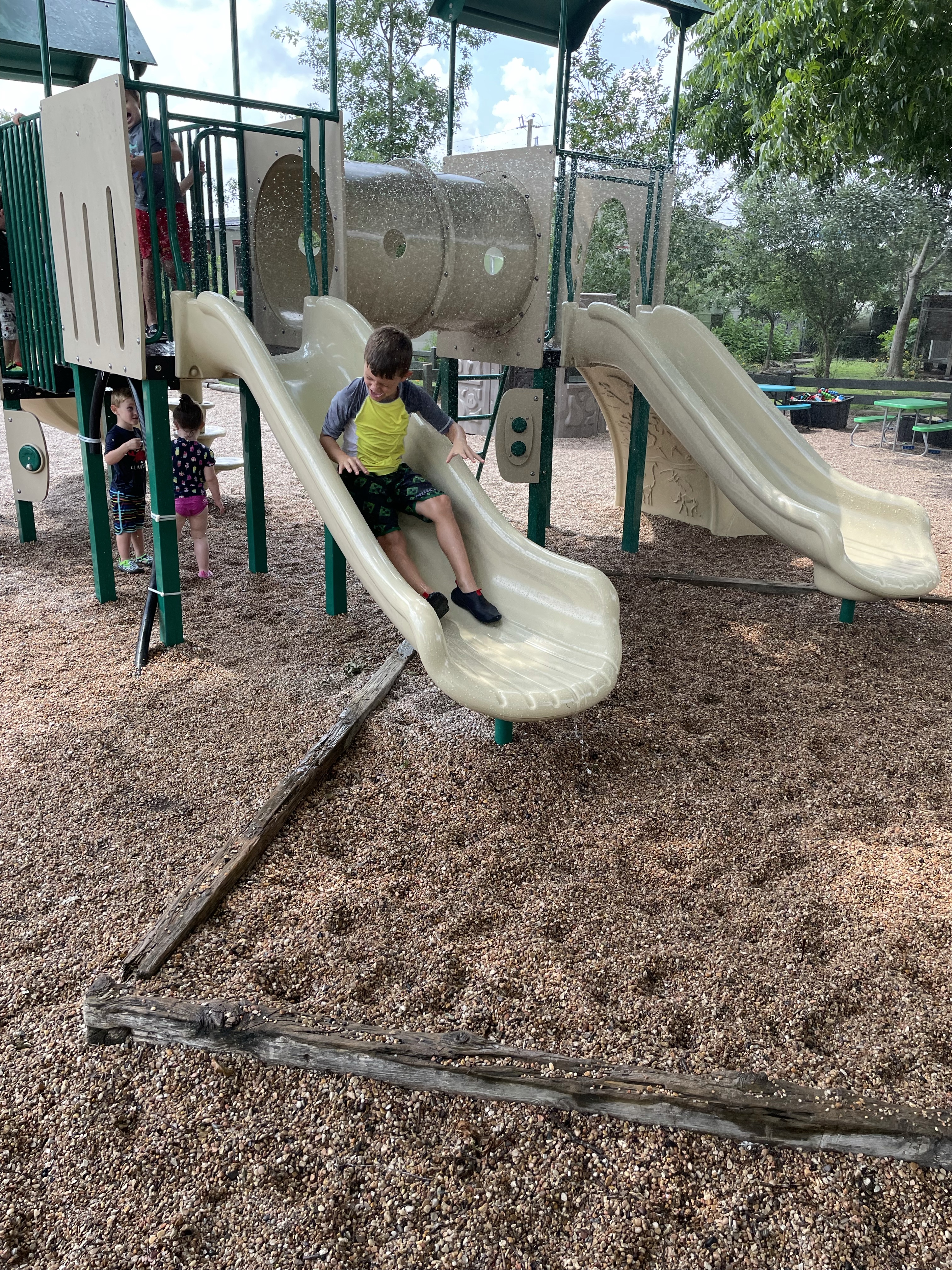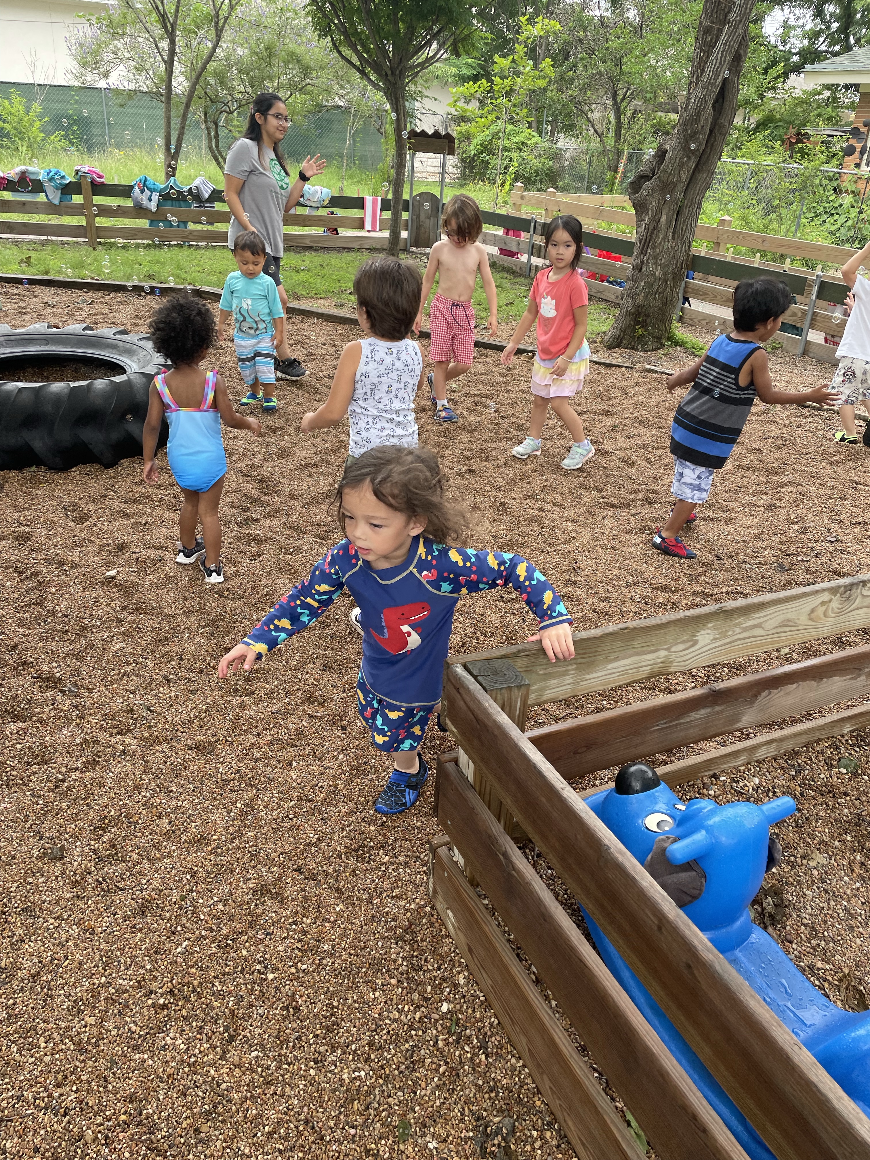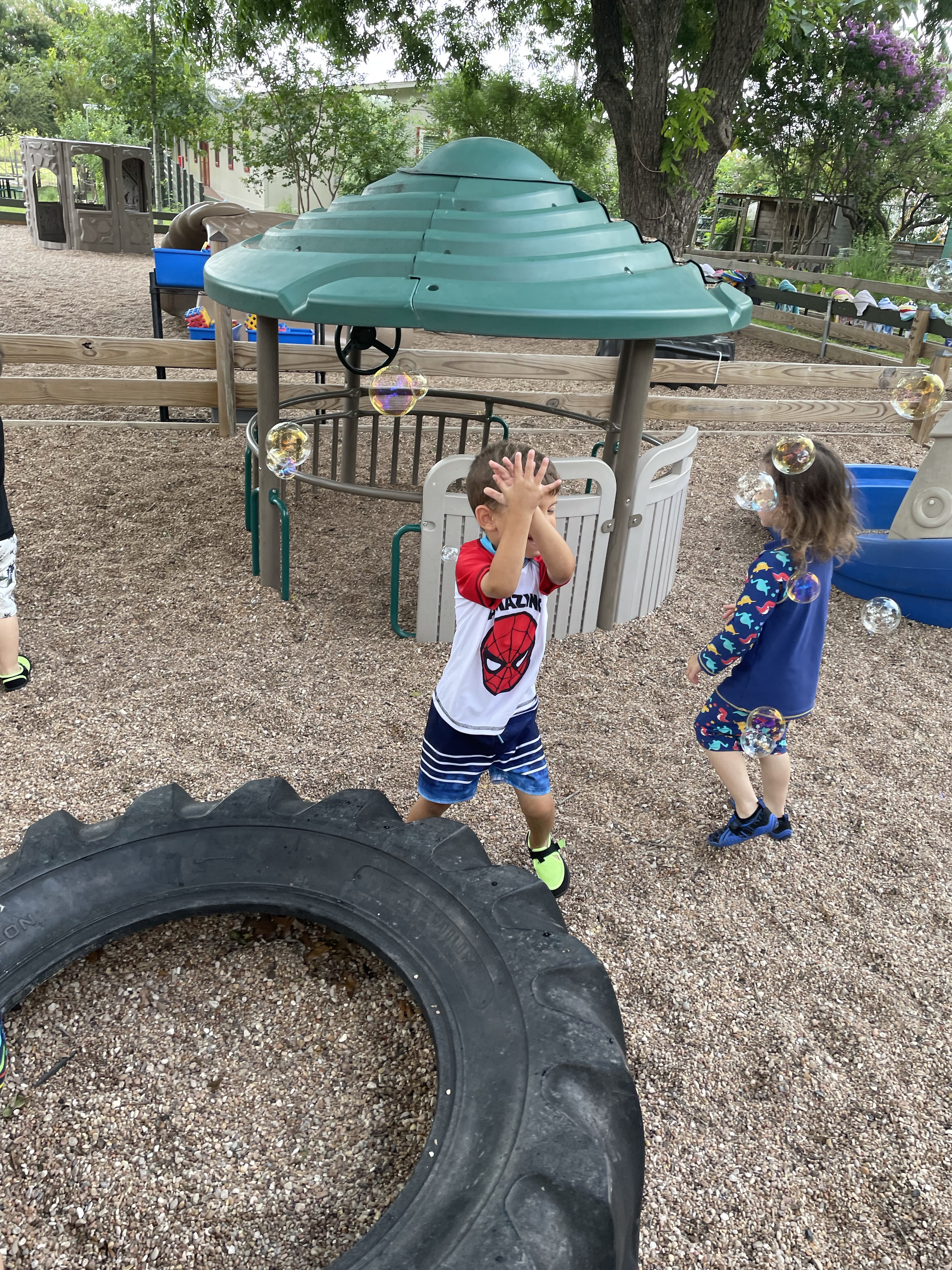 Yay! Your child can come to school in their bathing suits/with shirts or rash guards and wearing their normal sneakers. They should bring a bag with water shoes, a towel, and a change of clothing inside. We’ll help them change their shoes before splash day! After watermelon, bubbles, and fun on the playground with the hose, we will into our regular clothing and sneakers.