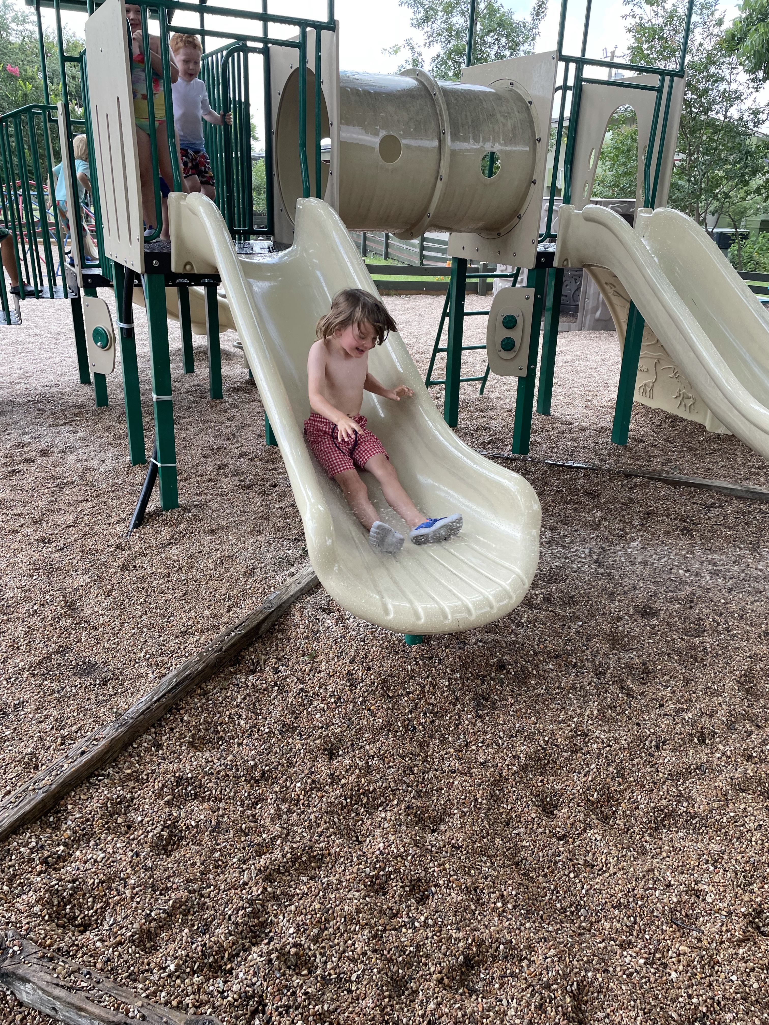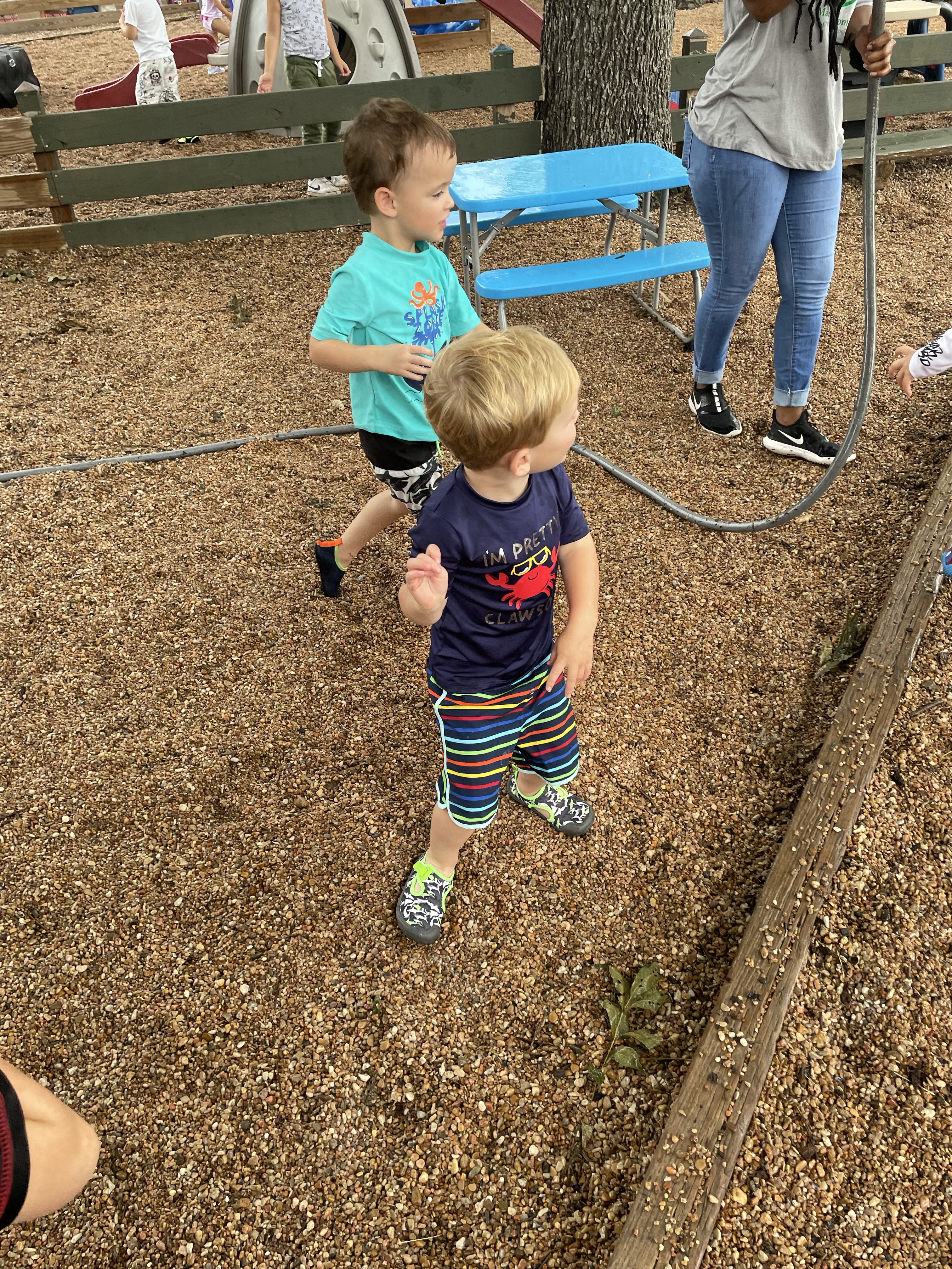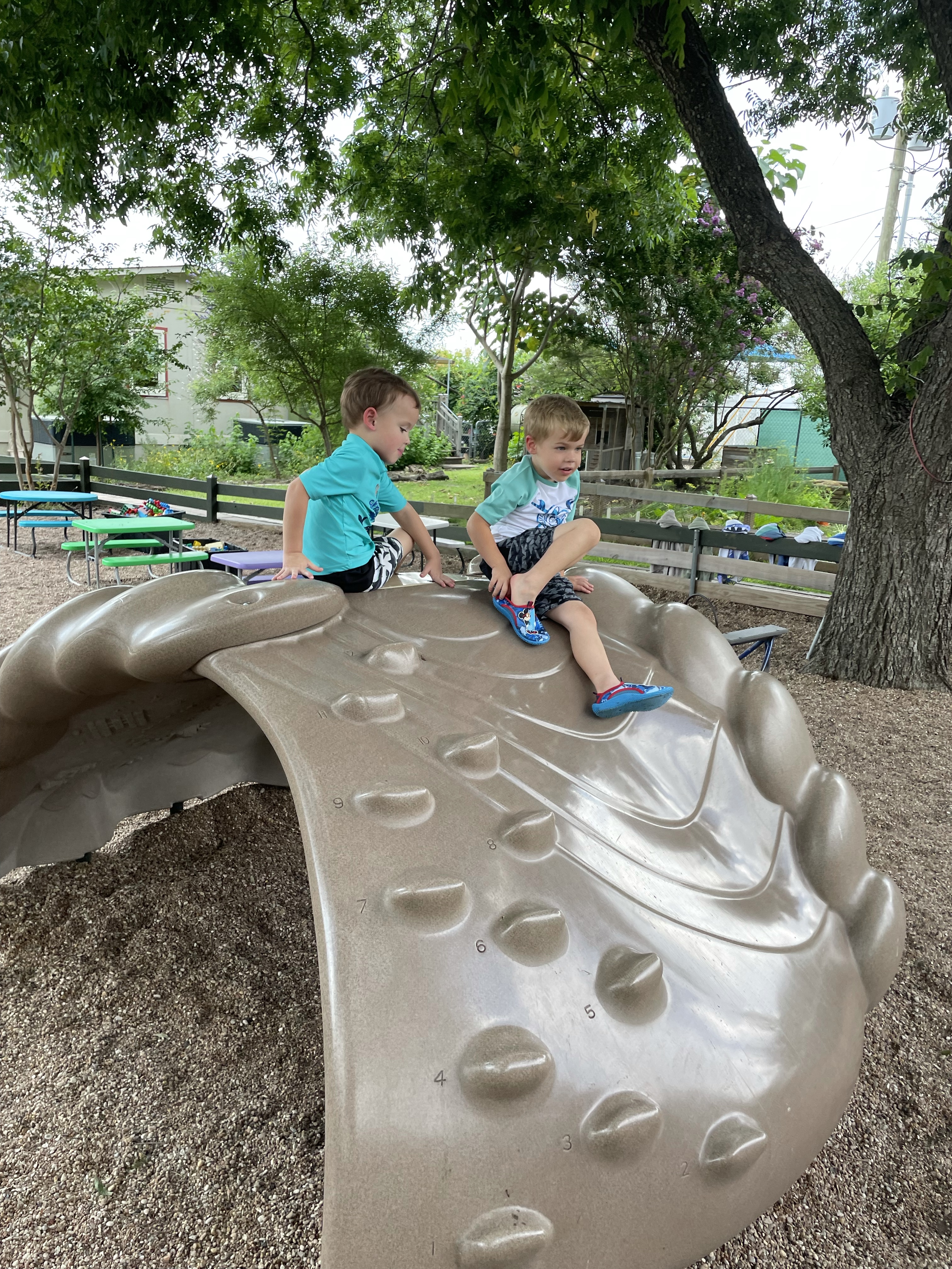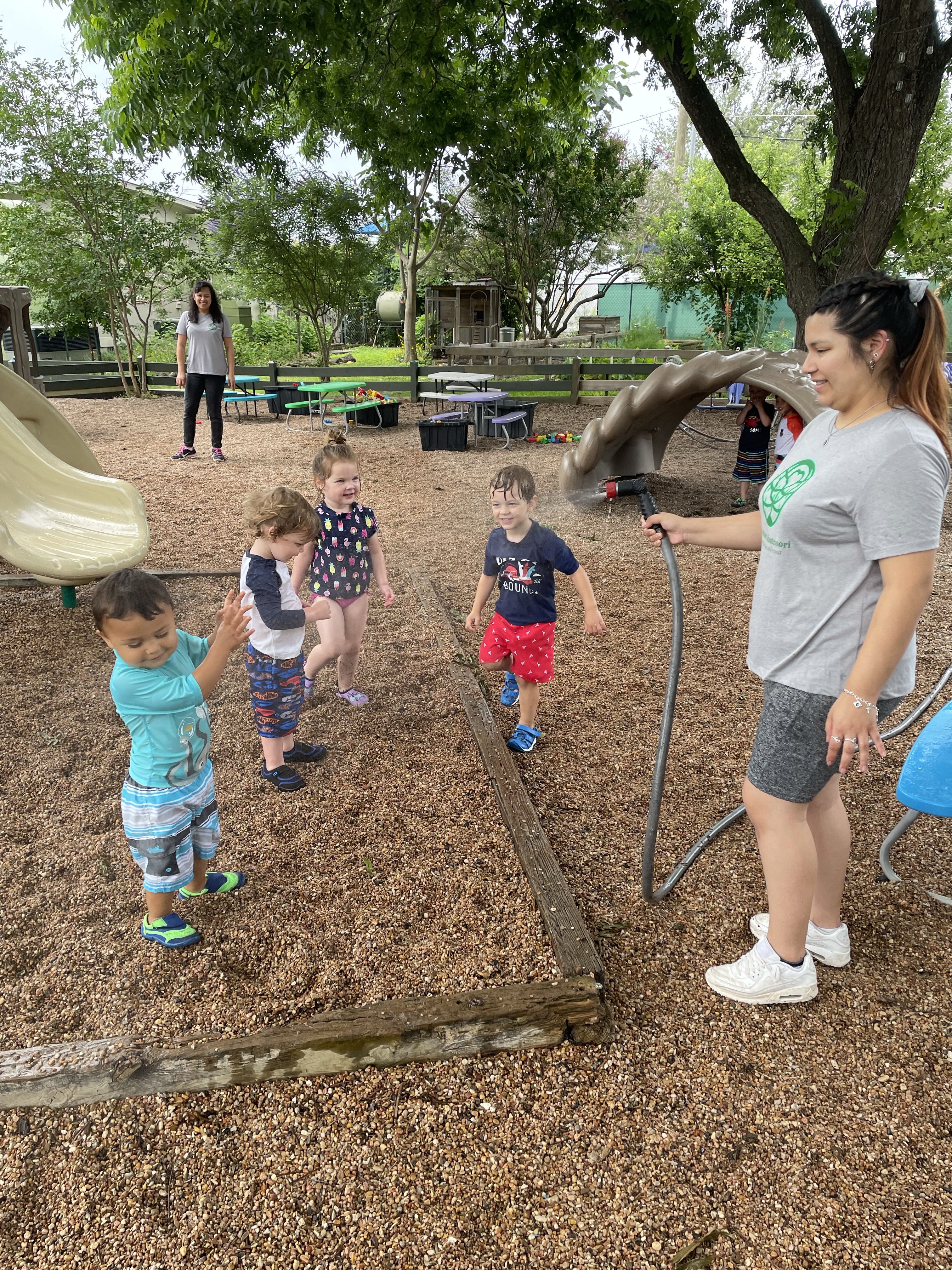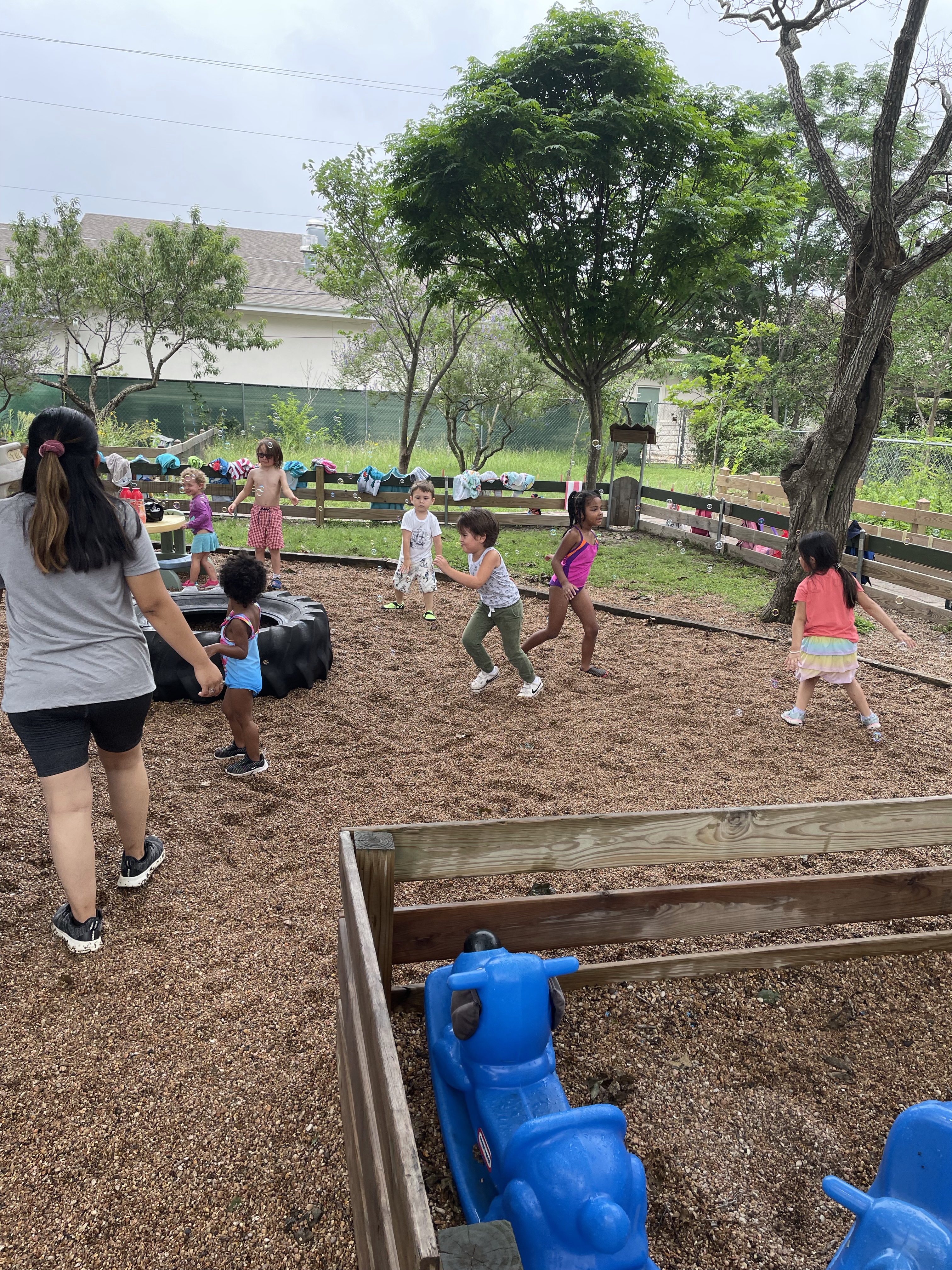 Yay! Your child can come to school in their bathing suits/with shirts or rash guards and wearing their normal sneakers. They should bring a bag with water shoes, a towel, and a change of clothing inside. We’ll help them change their shoes before splash day! After watermelon, bubbles, and fun on the playground with the hose, we will into our regular clothing and sneakers.