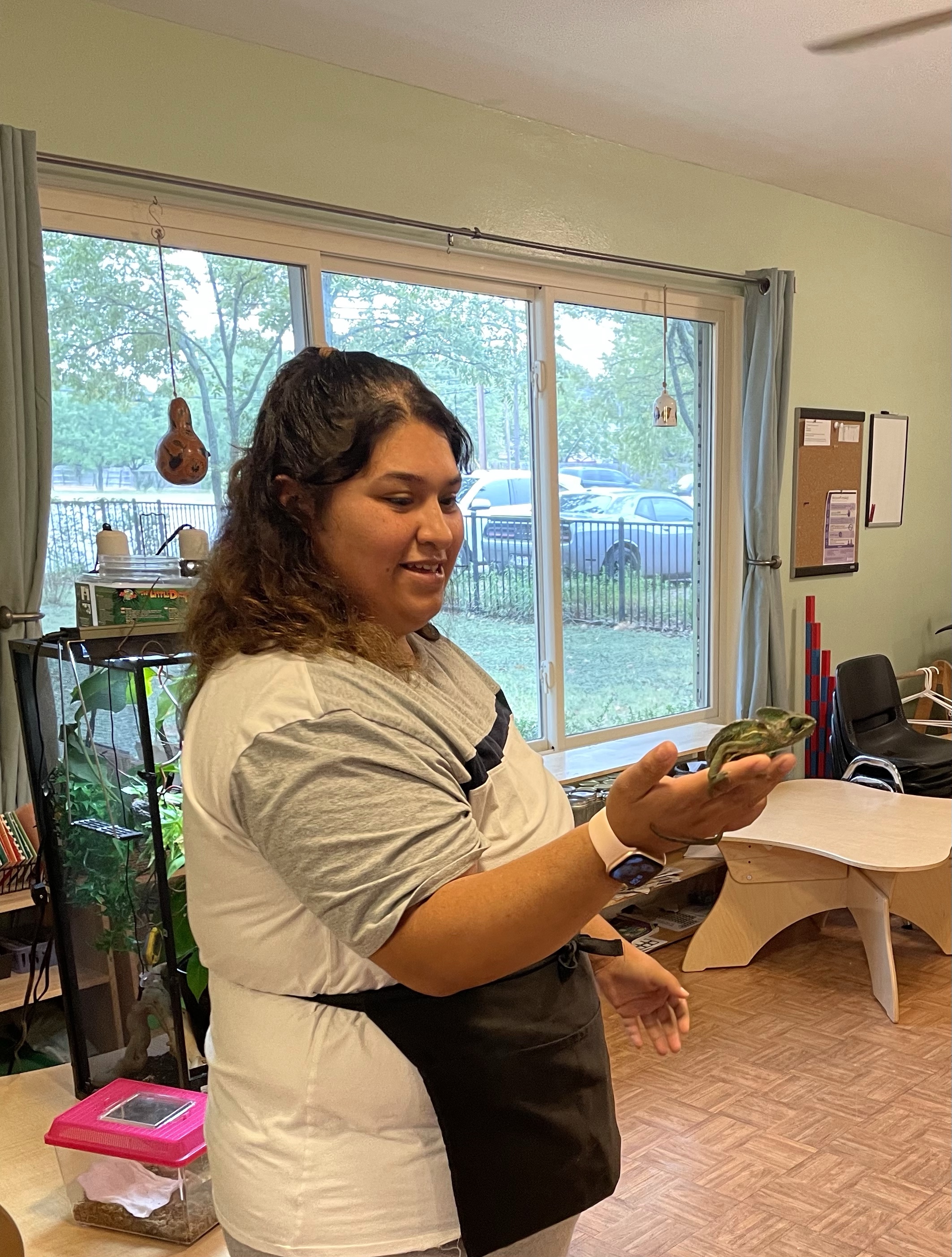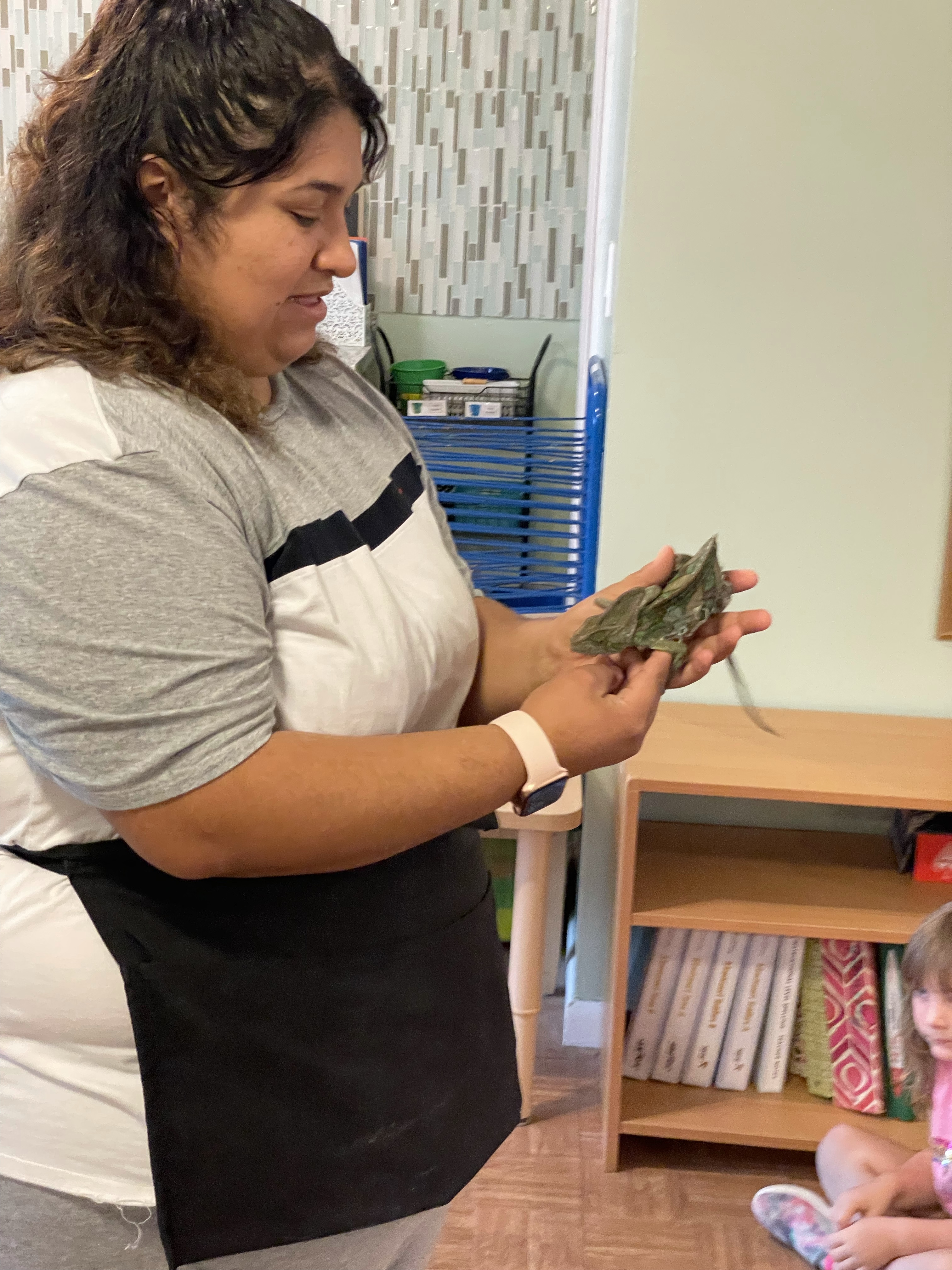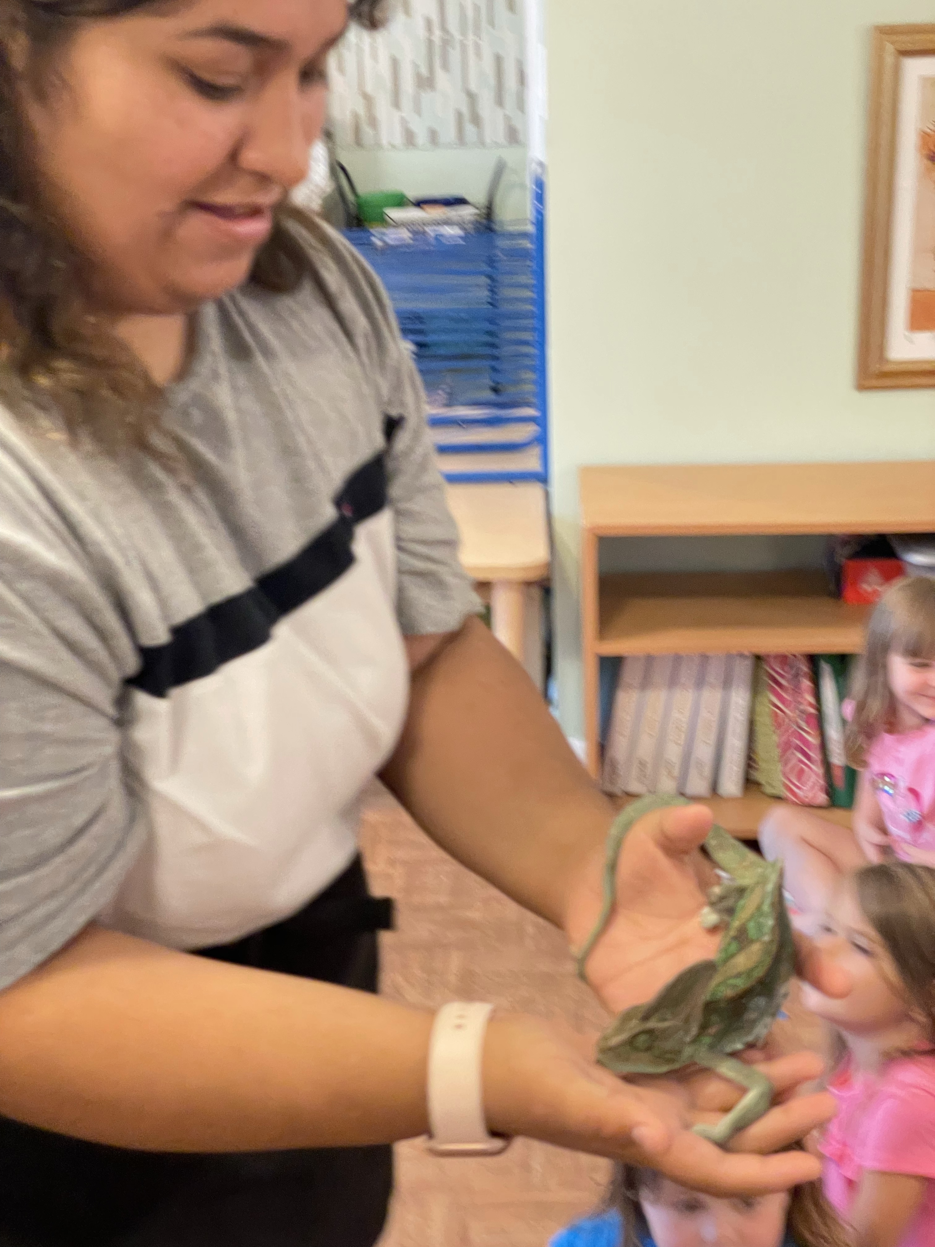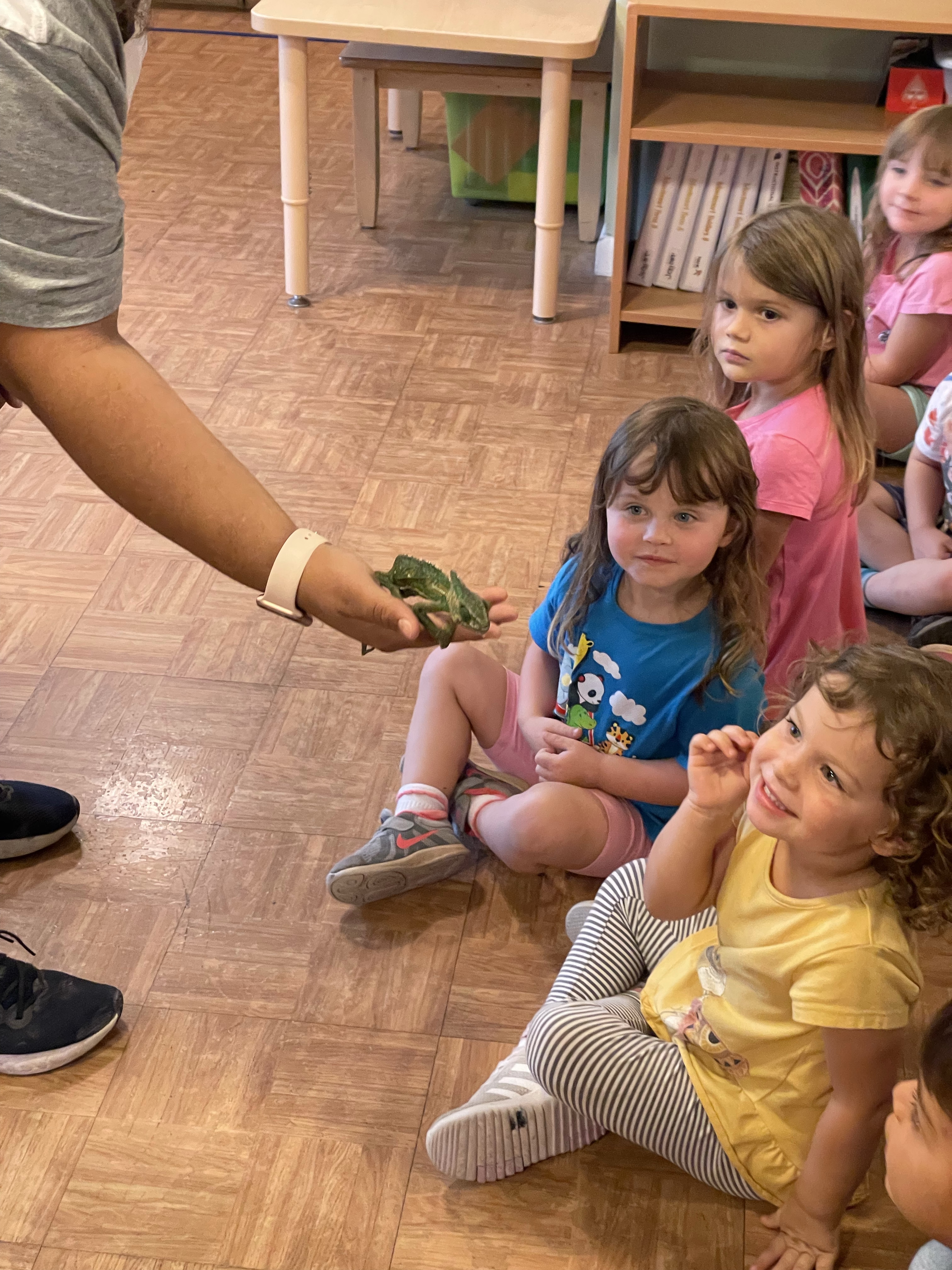 The children loved meeting her two chameleons, Kiwi and Melon, and her feisty eyelash gecko! I apologize for not taking more pictures—all three classes came to see our special visitors at different times during the lesson period.