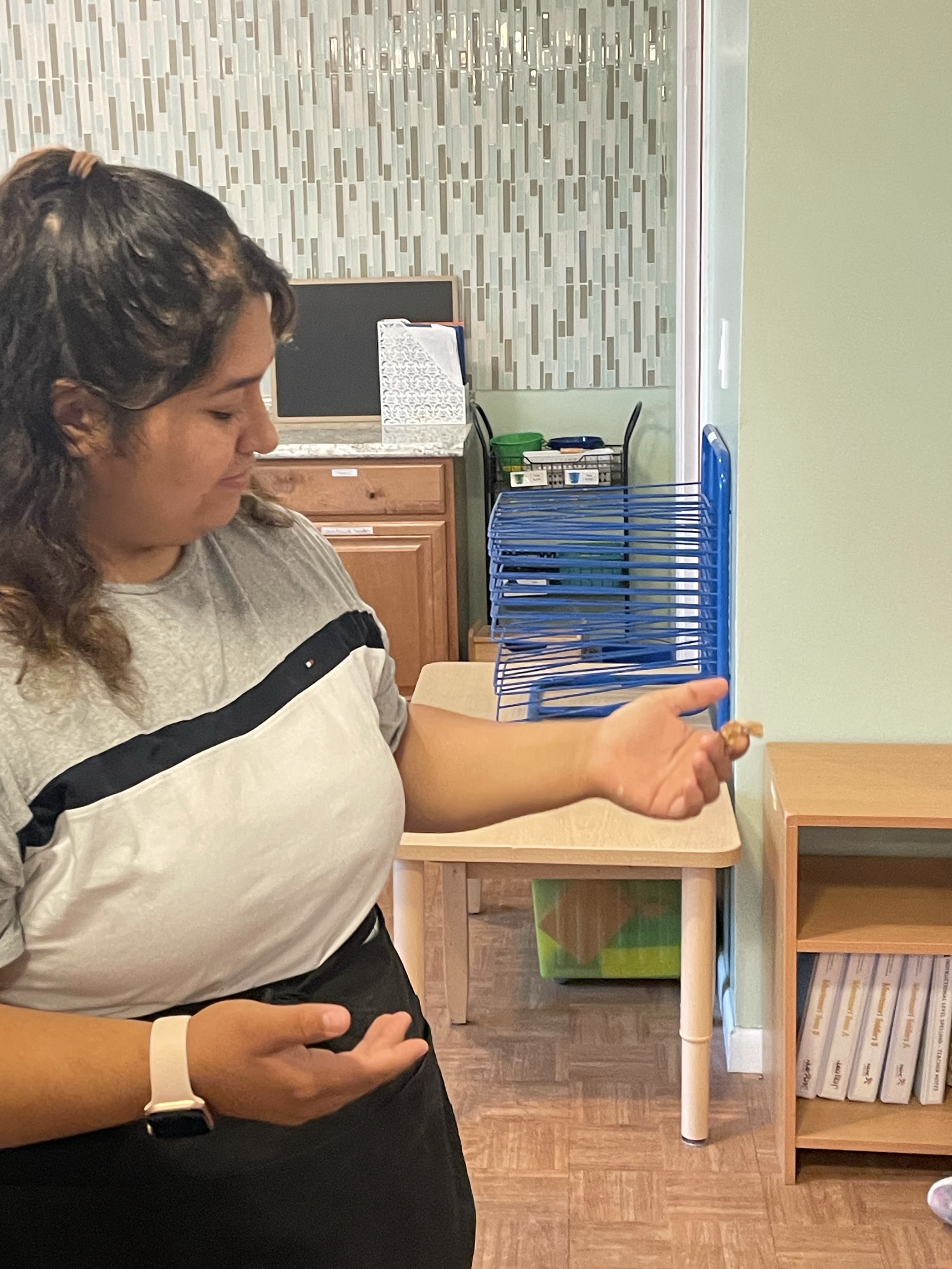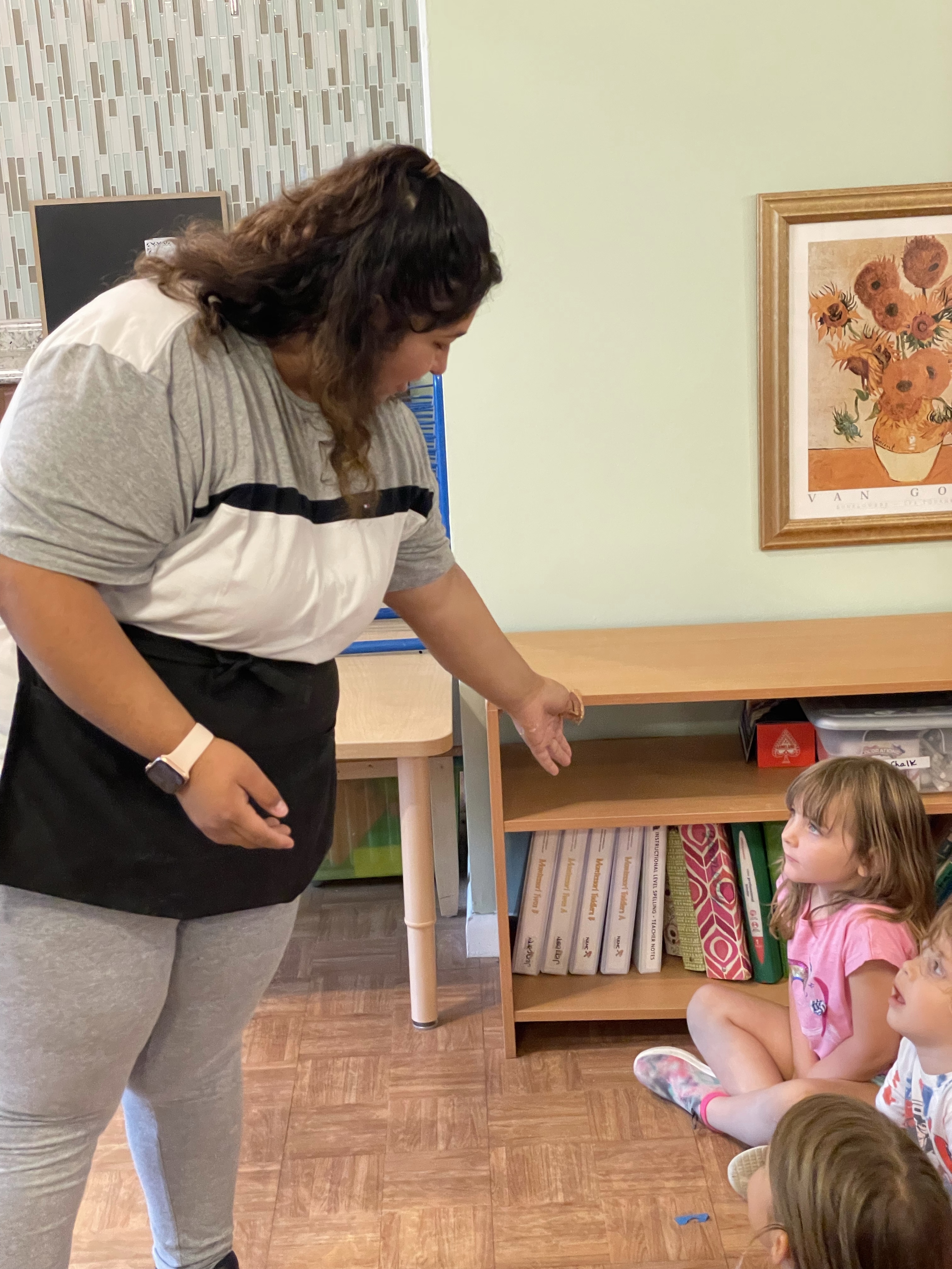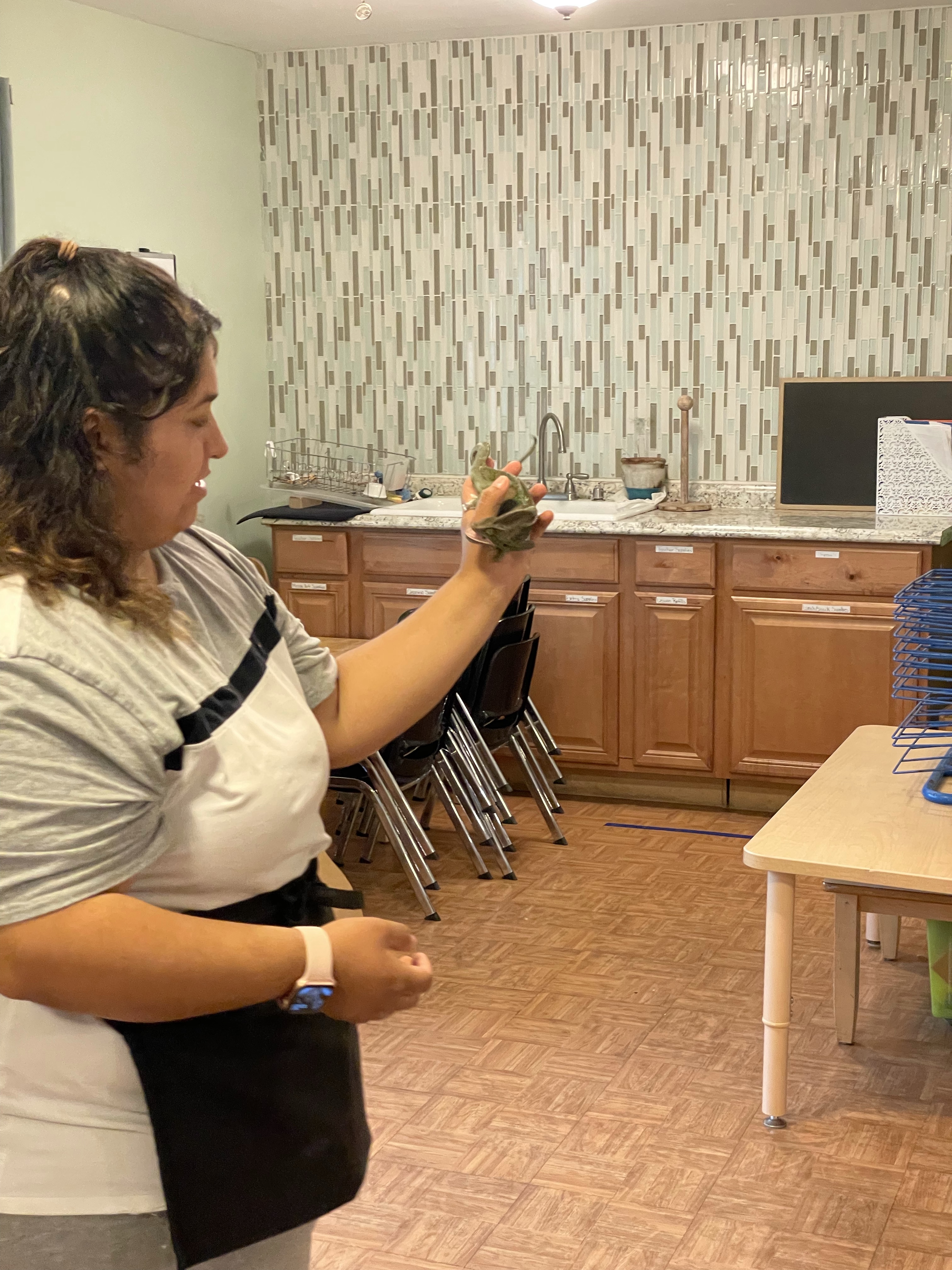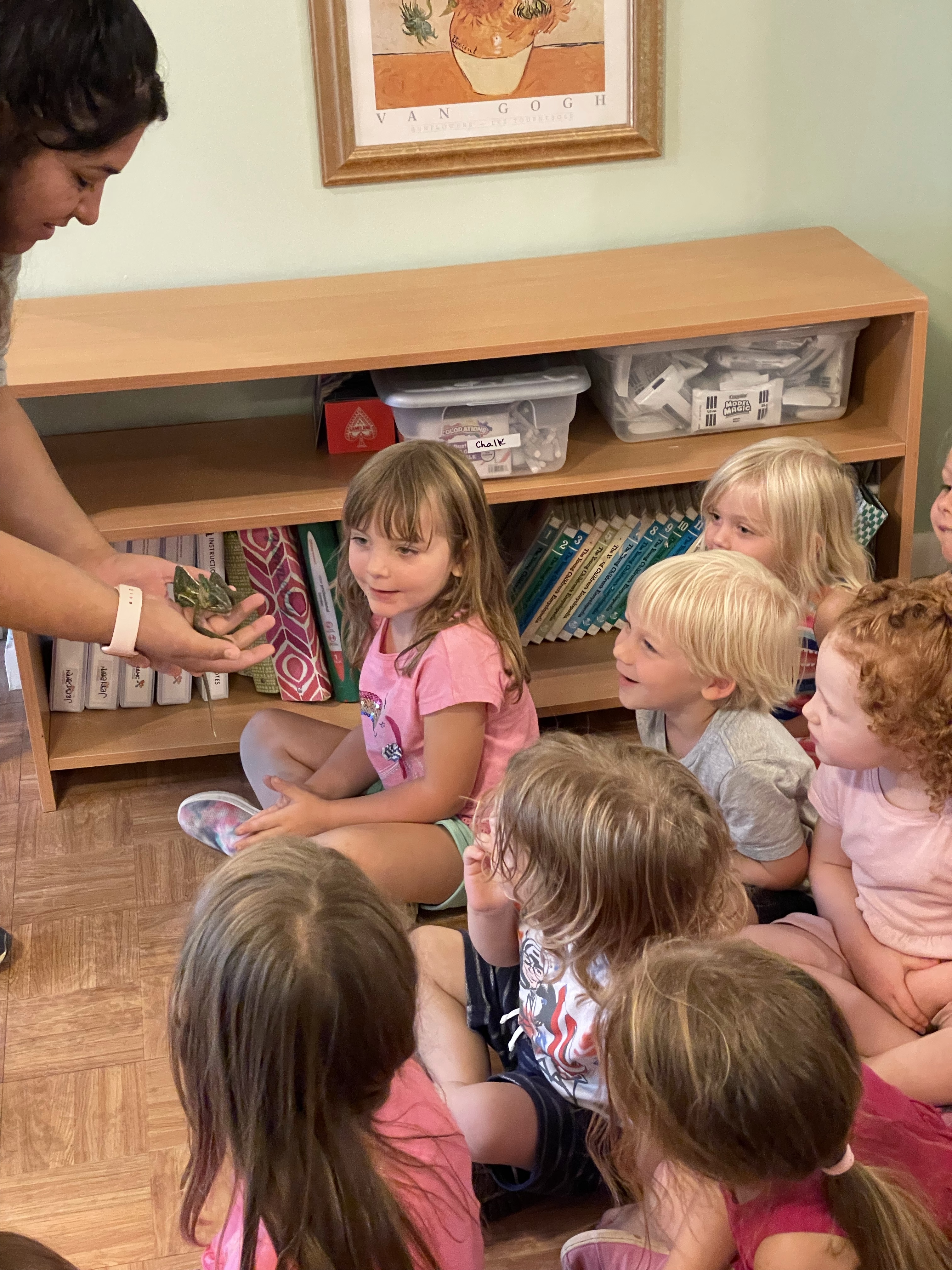 The children loved meeting her two chameleons, Kiwi and Melon, and her feisty eyelash gecko! I apologize for not taking more pictures—all three classes came to see our special visitors at different times during the lesson period.