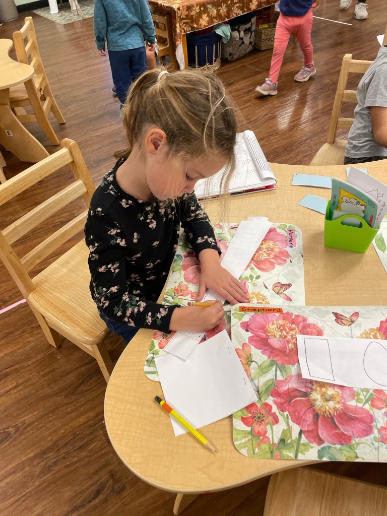 The older friends practiced sequencing and illustrating their chosen Beatrix Potter work before their dress-up day at the end of this week.