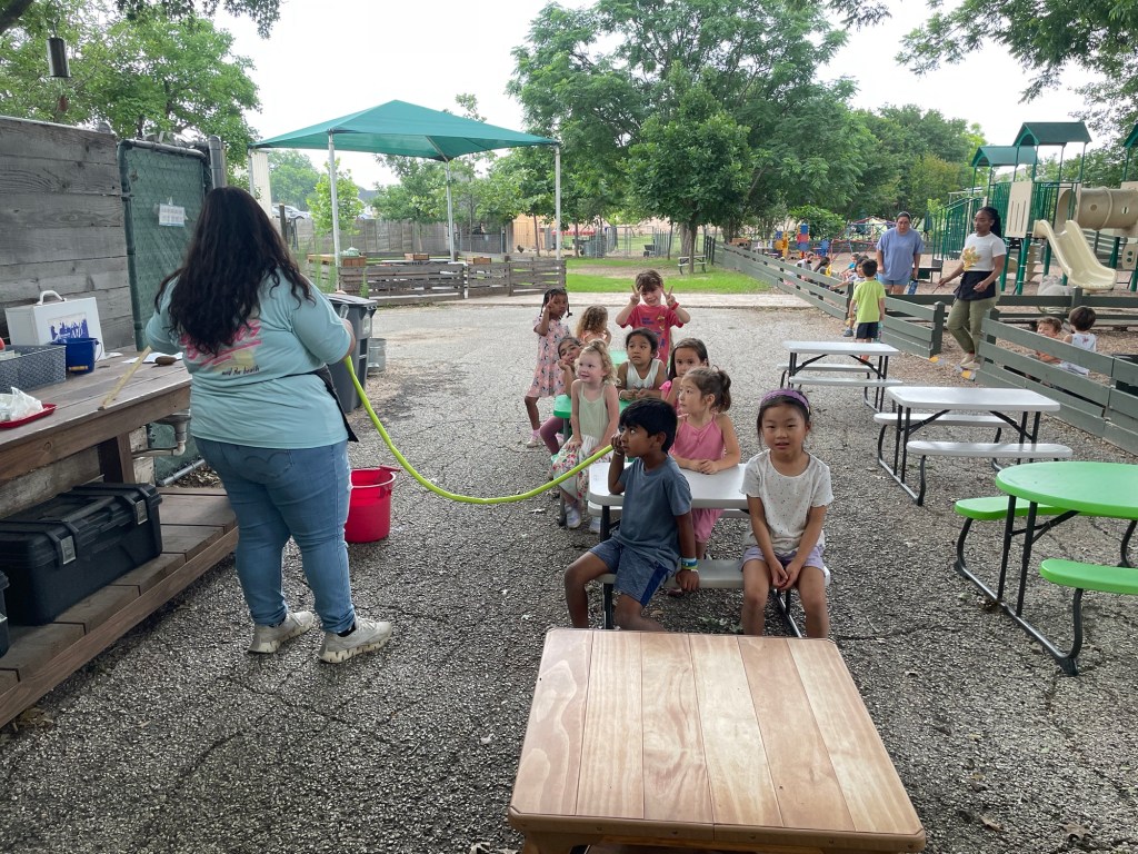 The children observed how sound moves through solids, liquids, and gases—and which medium transmitted sound best.